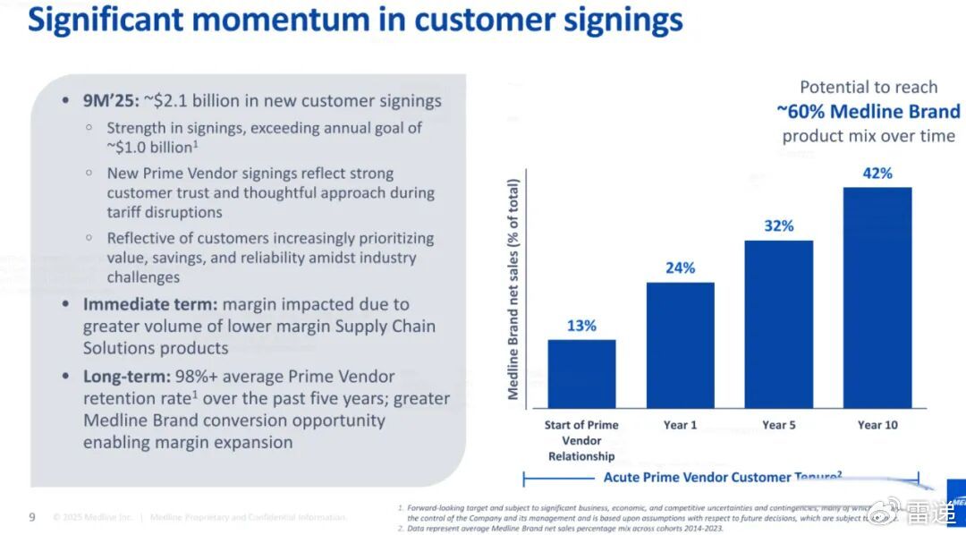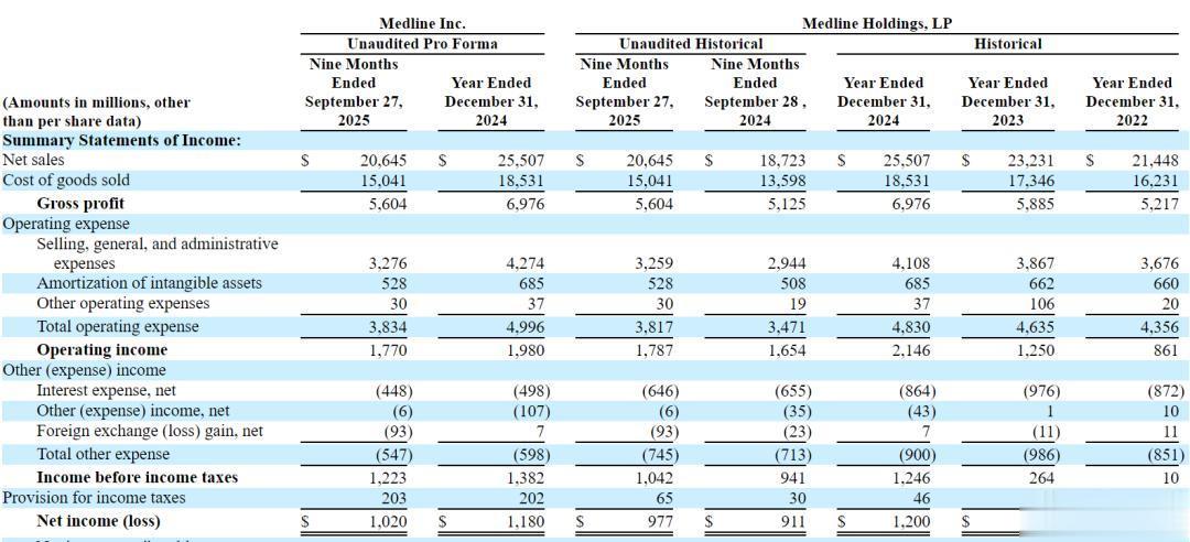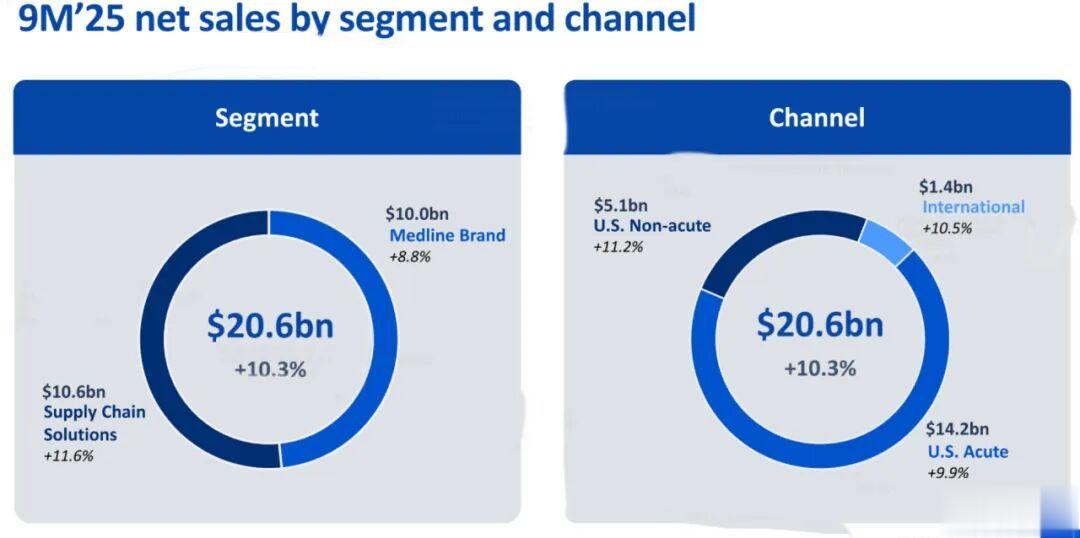 Medline在2025年前9个月营收为206亿美元,上年同期为187亿美元;运营利润为17.87亿美元,上年同期的运营利润为16.54亿美元;净利为9.77亿美元,上年同期的净利为9.11亿美元。