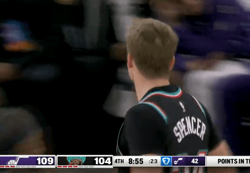 射手兄弟!斯潘塞晃飞防守三分再投进,目前三分4中4拿14分