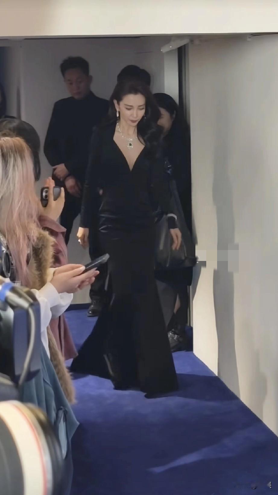 在活动现场,李冰冰一袭黑色深V长裙尽显优雅气质。