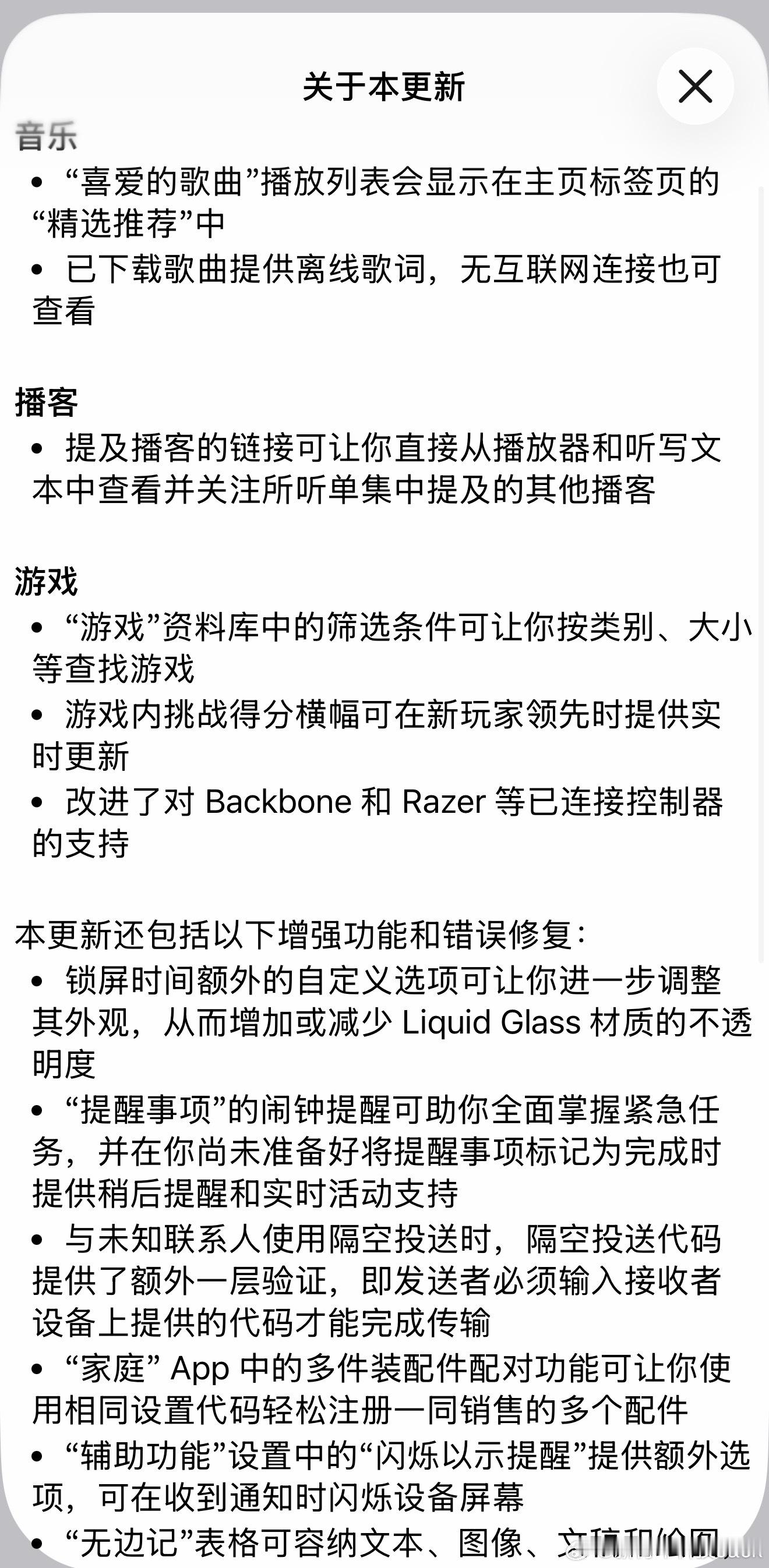 苹果iOS26.2正式版来咯本更新为“音乐”、“播客”和“游戏”带来了增强功