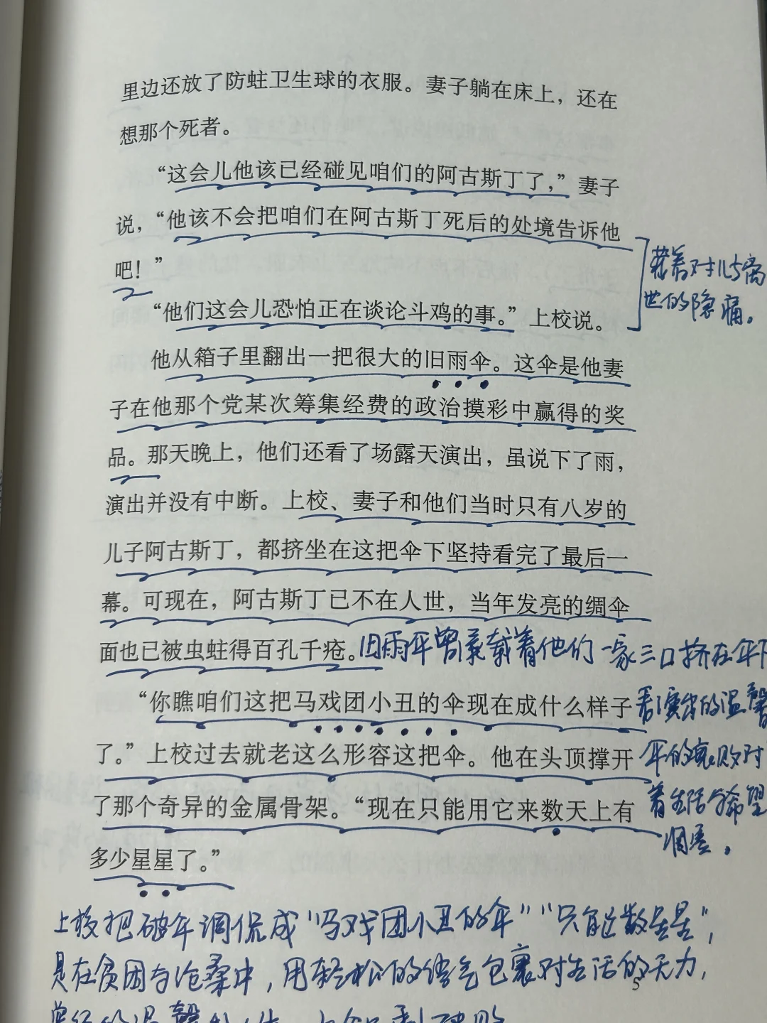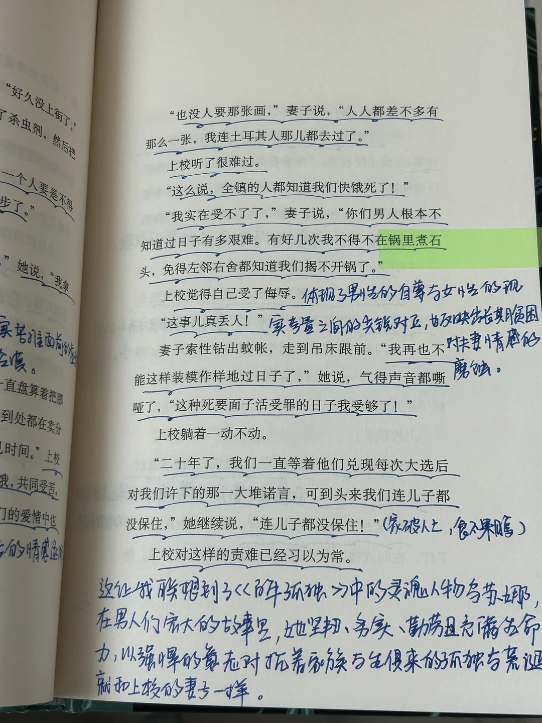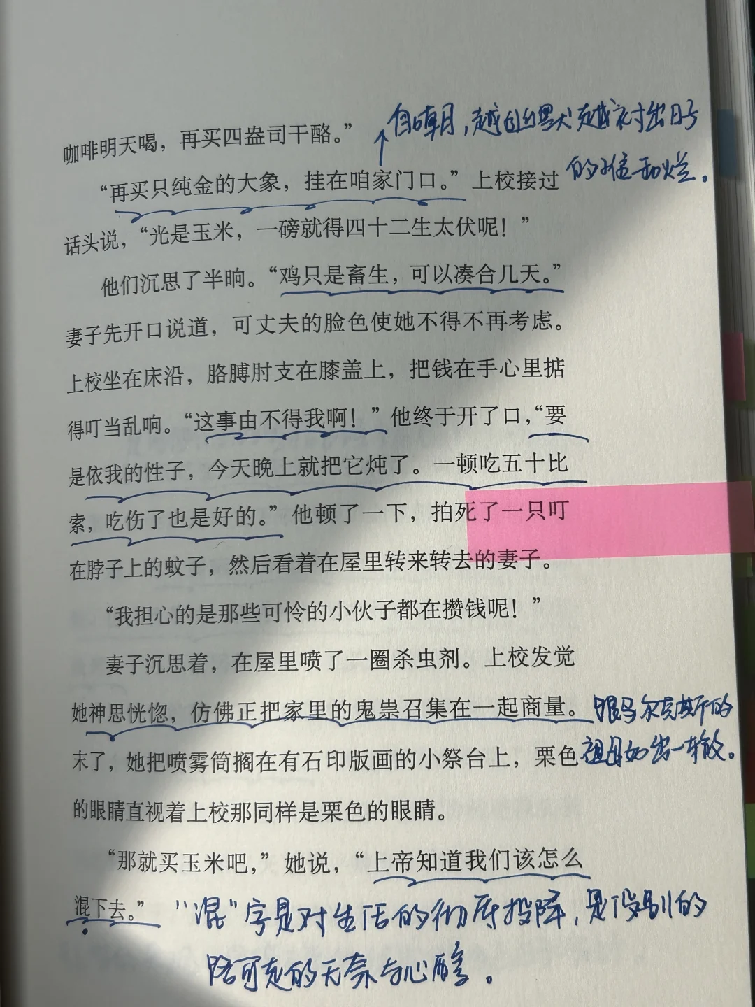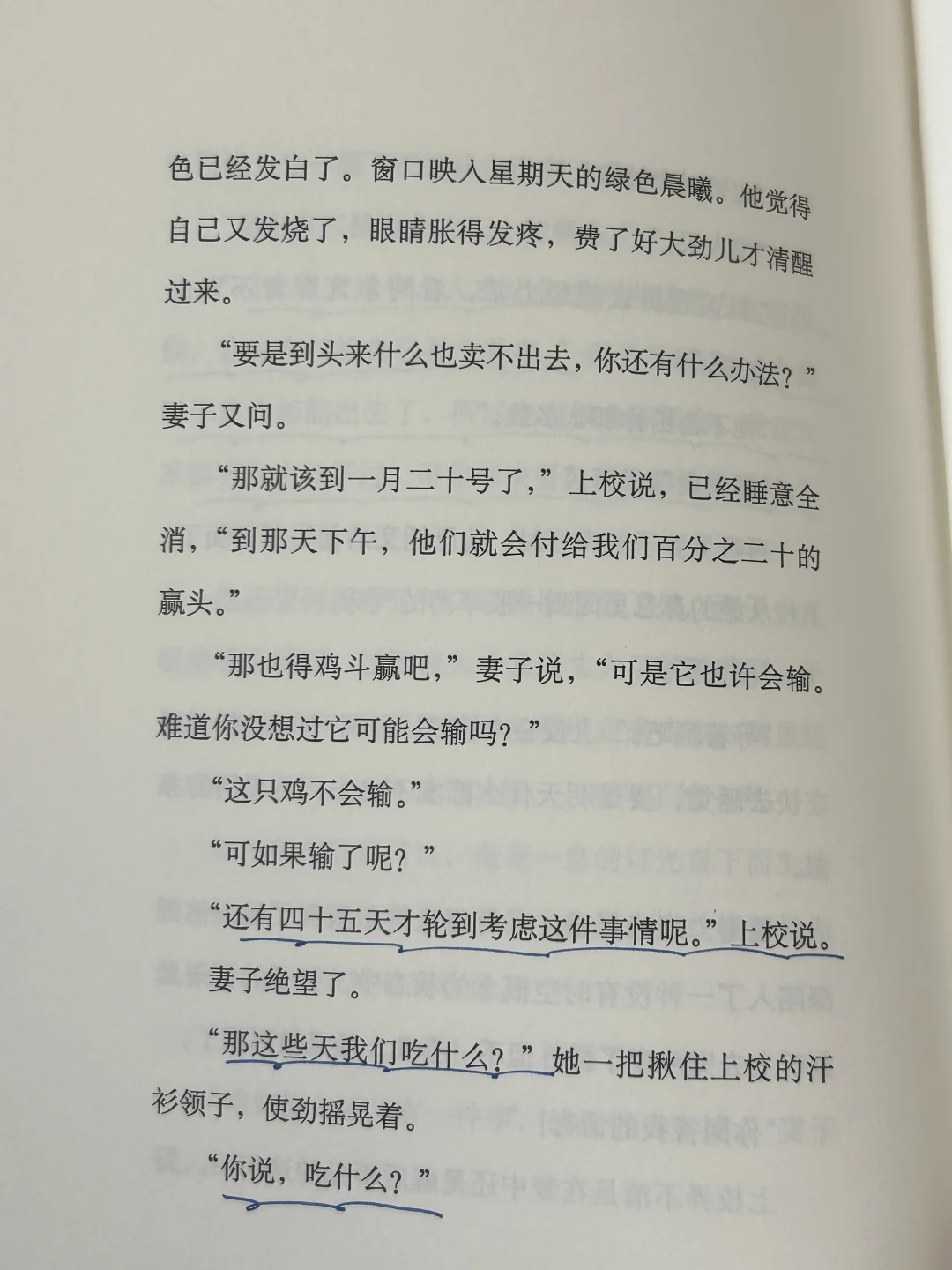 书中讲到他们实在揭不开锅了,上校的妻子让他去卖家里的东西,上校因为死要面子活受罪,最终没有卖出去任何东西,这也让妻子生性倔强的妻子,就连儿子死的时候她也没掉一滴眼泪,却因为没饭吃而伤心落泪。