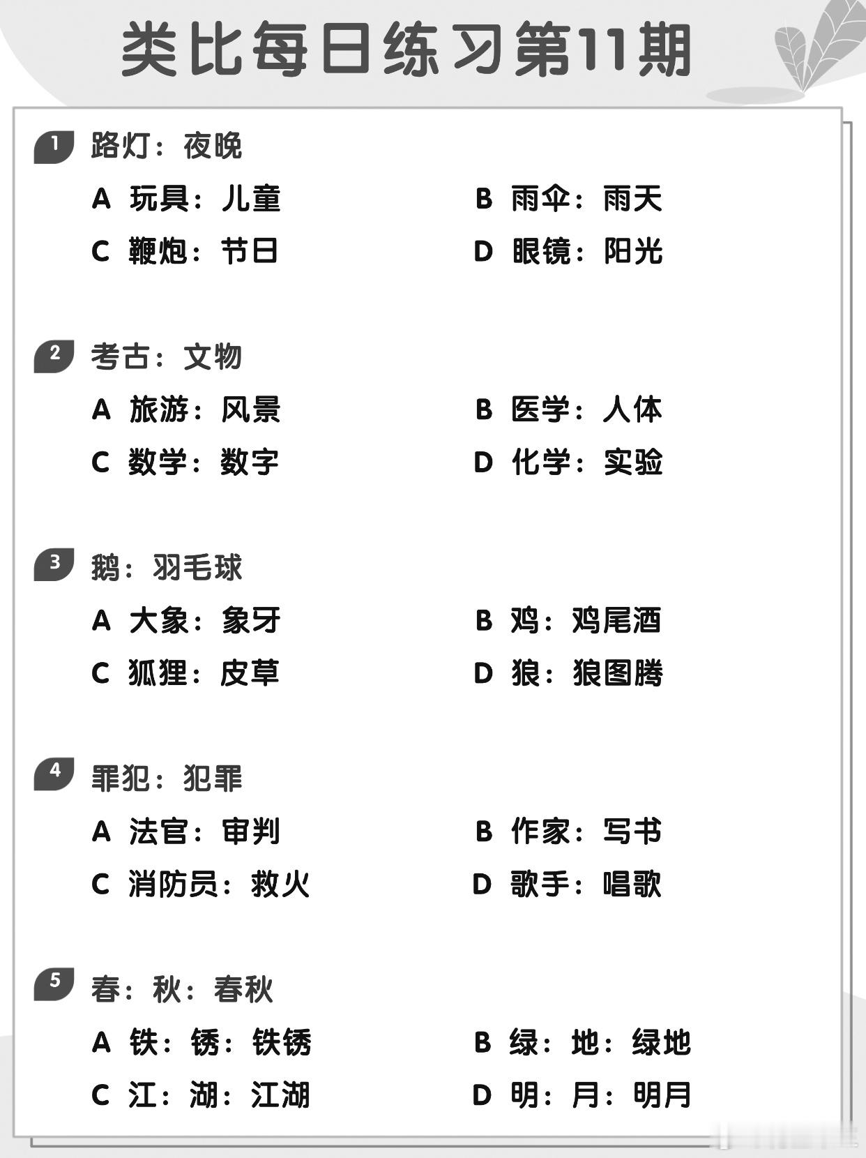图推类比每日练习第11期图推难度:☆☆类比难度:☆☆开学元气加油站决战公考省考2