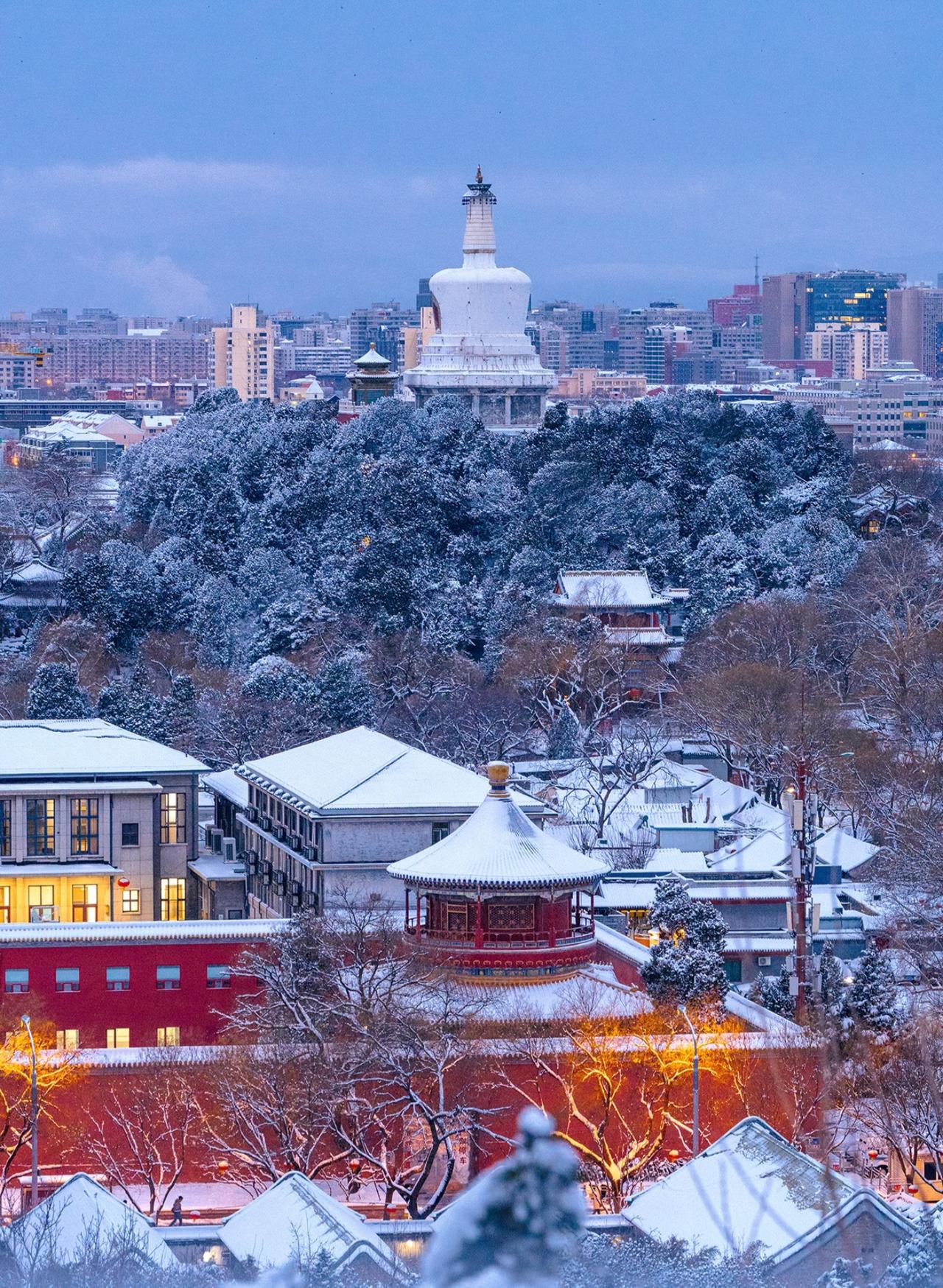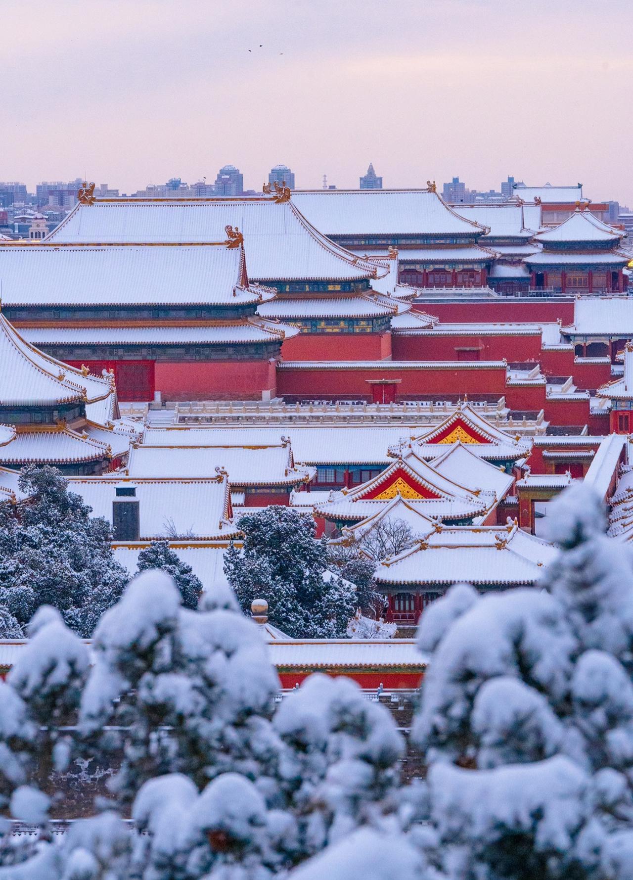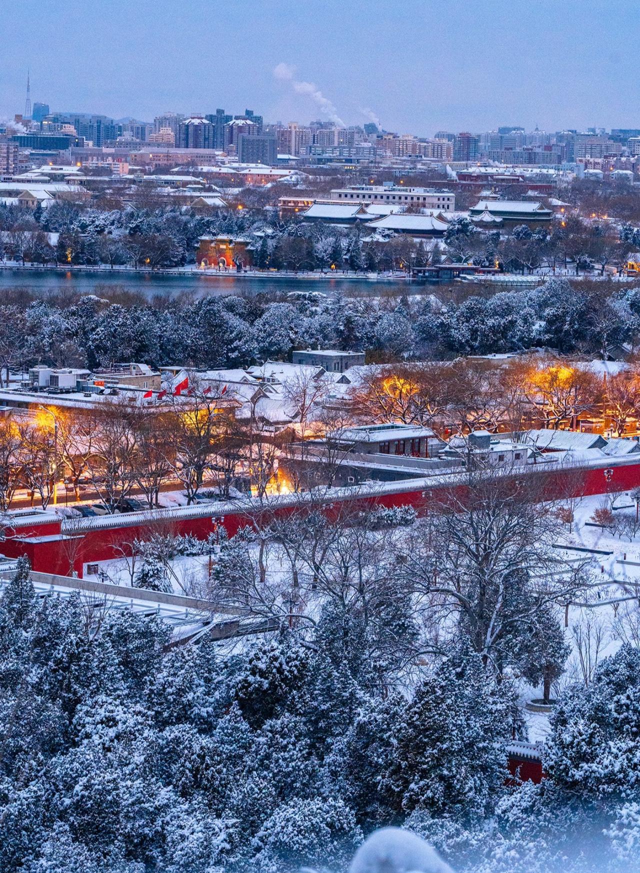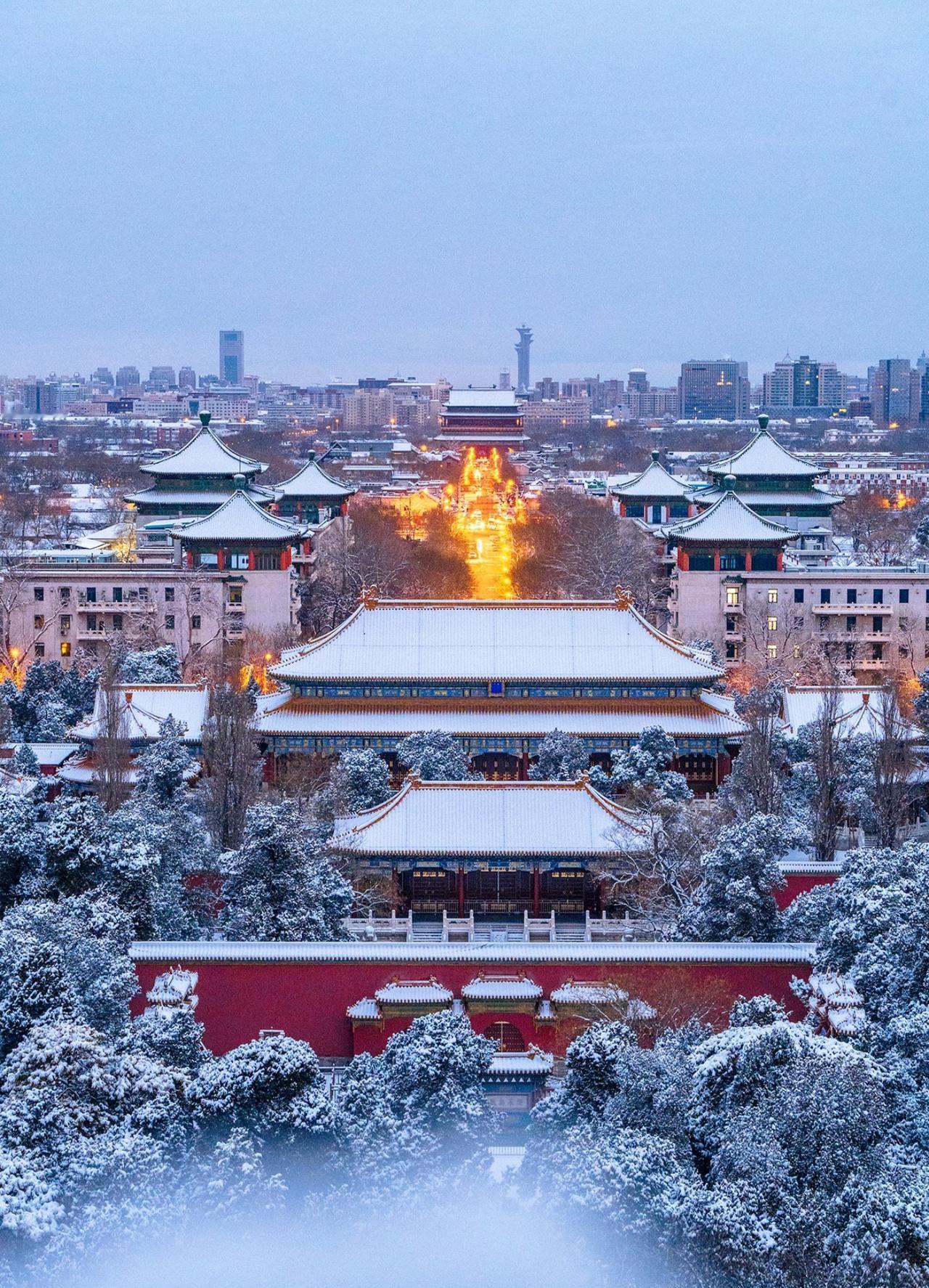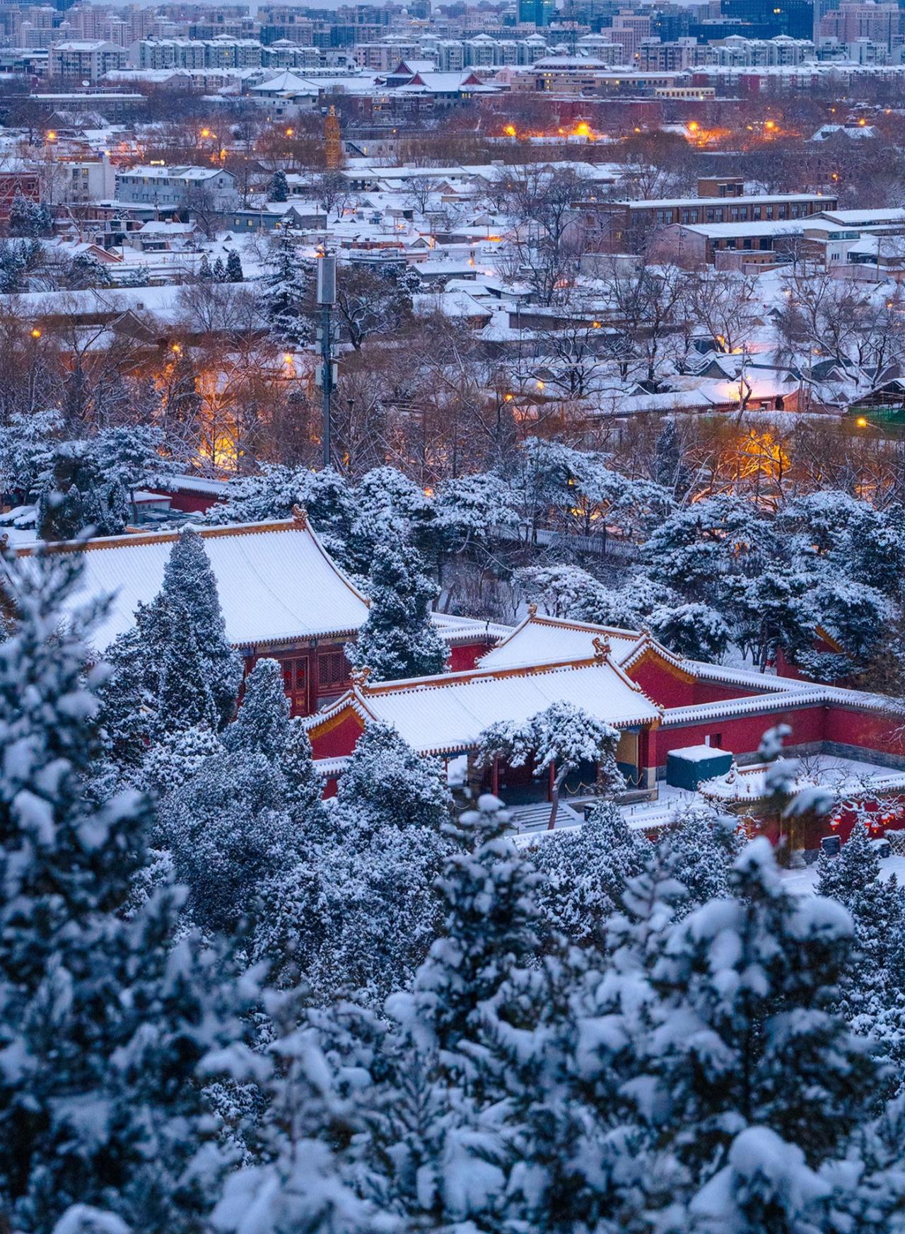 北京初雪后的景山山顶 紫禁城的雪国奇观 清晨六点,天还未完全亮 景山万春亭已站满等待日出的人 当第一缕晨光穿透薄雾 灯火的暖黄与积雪的银白交织 紫禁城仿佛沉睡在冰雪童话中 📸最强机位:万春亭正南侧 • 可同时拍到故宫中轴线与城市天际线 • 建议使用长焦镜头压缩空间感 • 蓝调时刻(日出前20分钟)拍摄最佳 ❄️实用攻略: 1. 门票2元,需提前预约 2. 山顶风大,务必做好保暖 3. 最佳拍摄时间:雪后次日清晨 4. 交通:地铁8号线美术馆站步行15分钟 站在北京中轴线的最高点 看金顶朱墙渐渐染上晨光 昨夜的新雪覆盖了六百年的故事 这是独属北京冬天的仪式感
