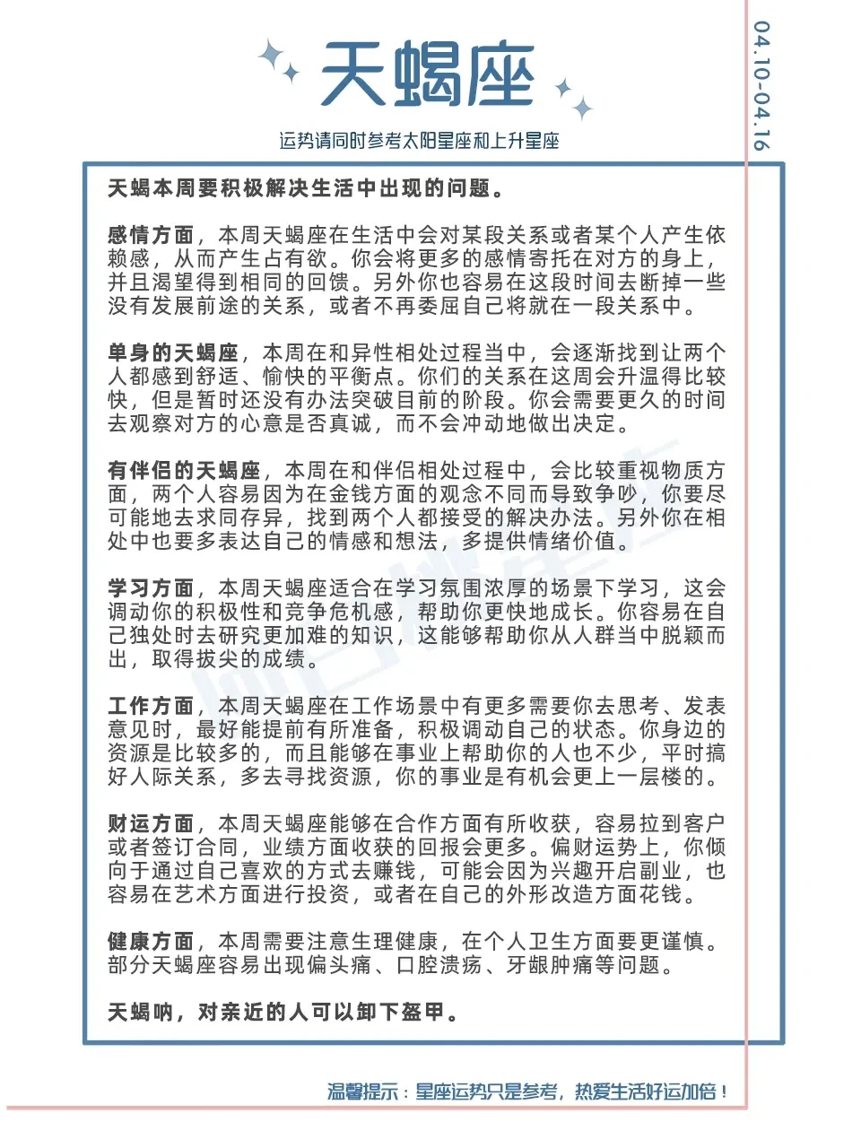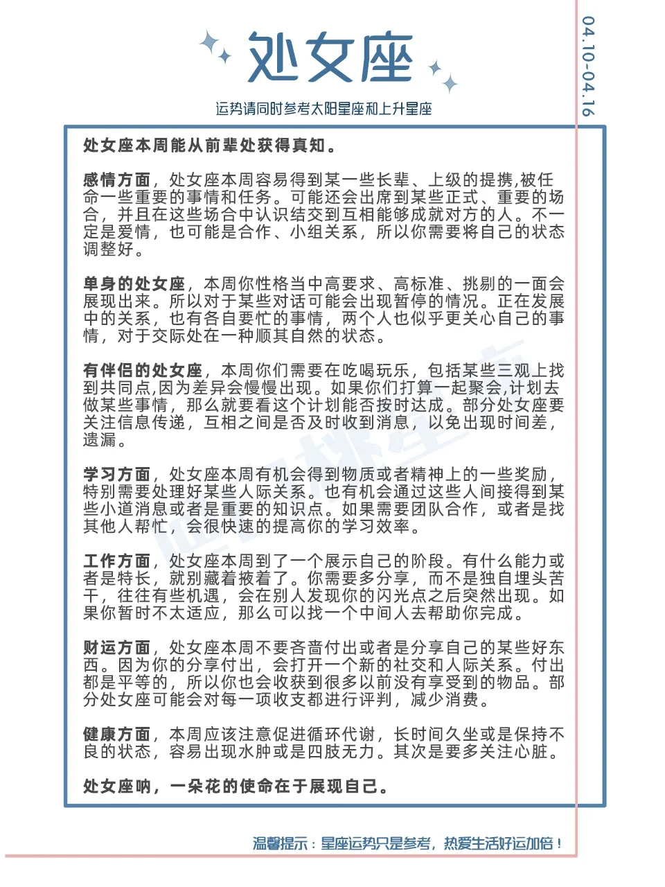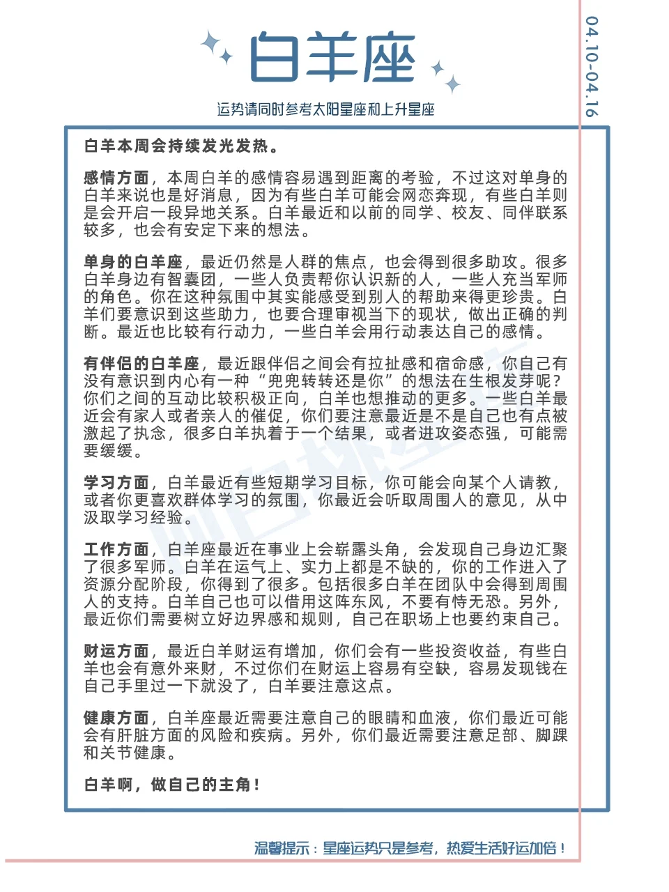 『白桃星座周运』4.10-4.16