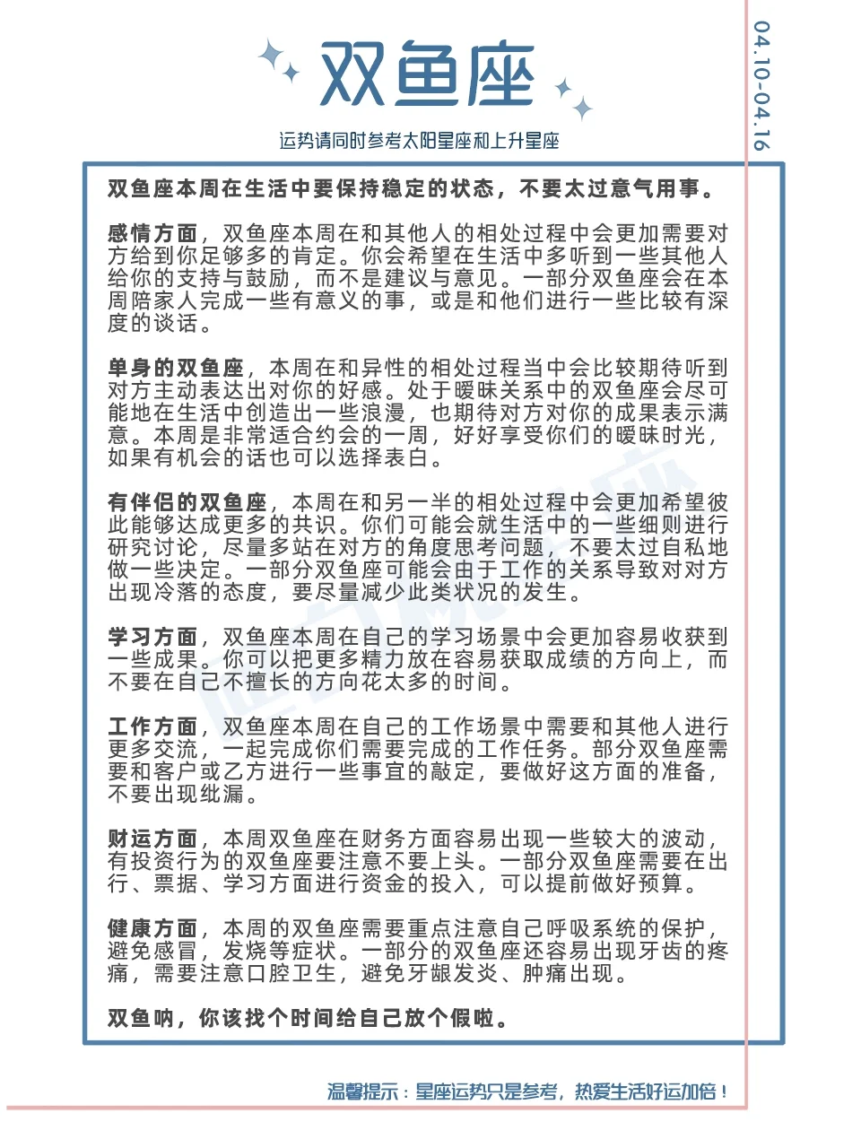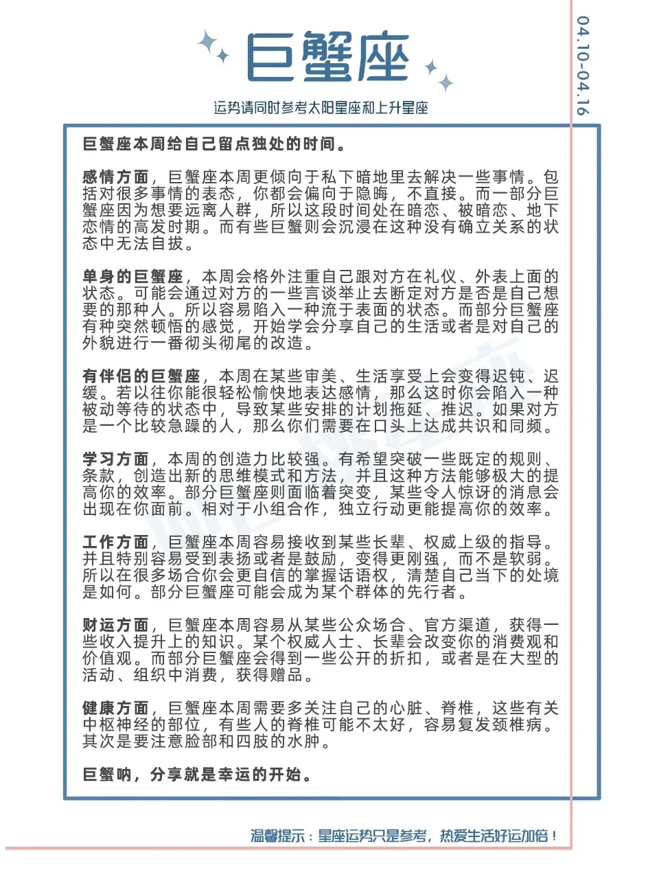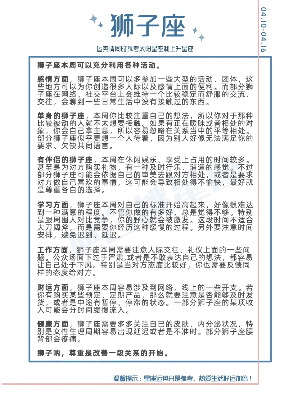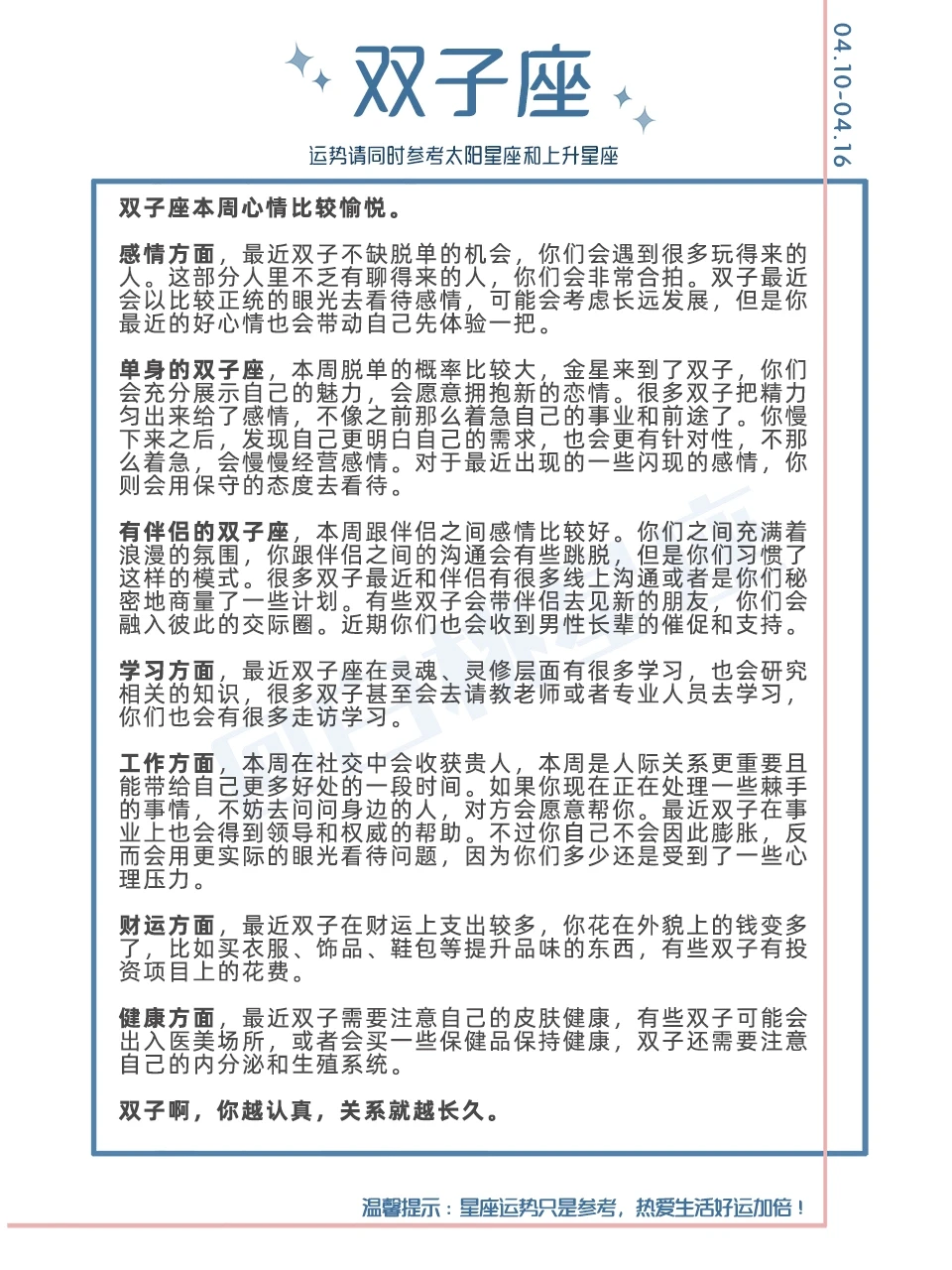 『白桃星座周运』4.10-4.16