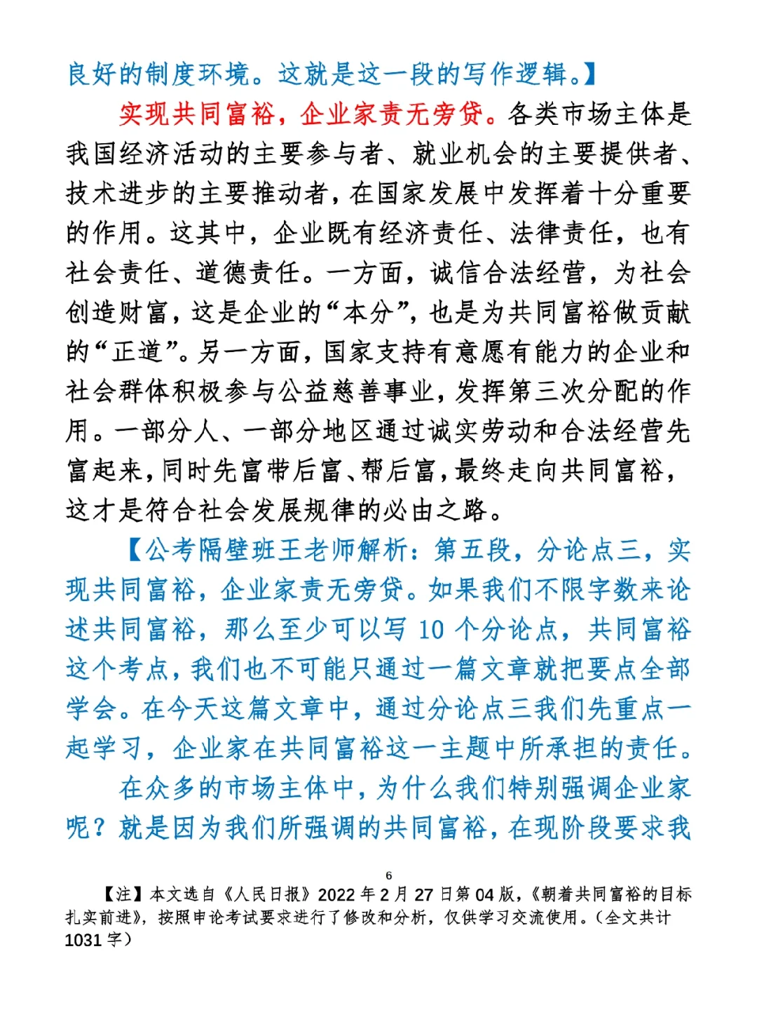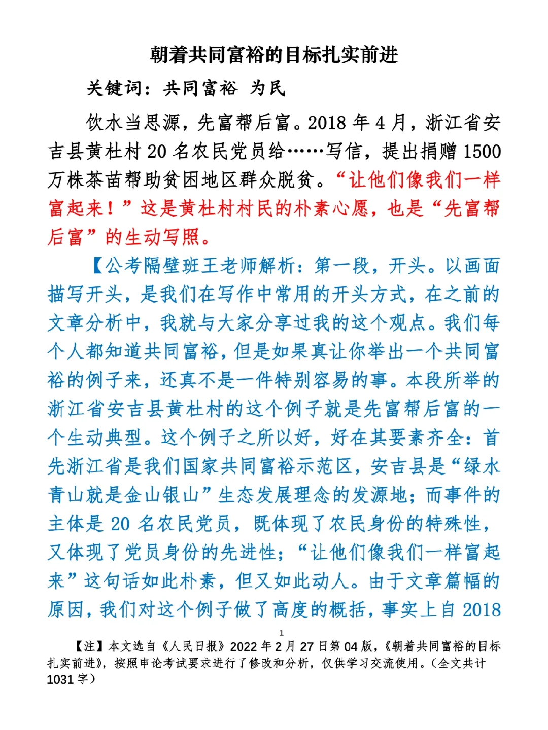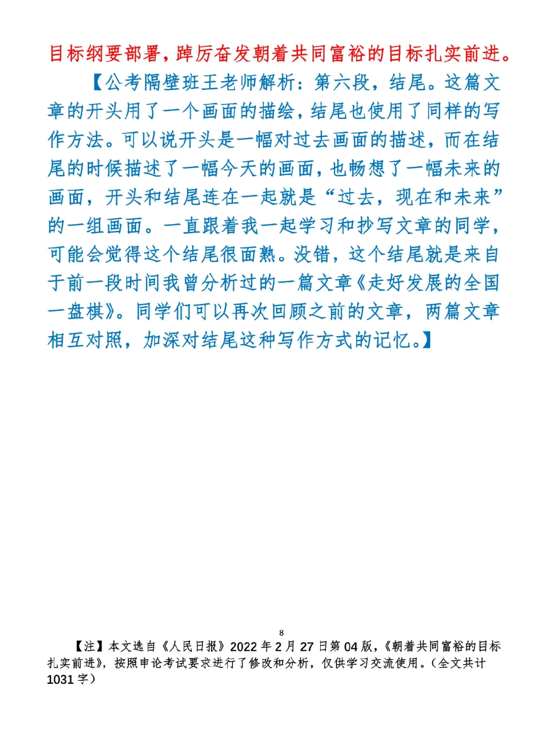 1.如何抄写:每天的抄写文章以图片形式发在“公考隔壁班王老师”账号,红色字是重点句和结构句,黑色字是正文,蓝色字是解析,大家抄写时不必抄蓝色字。建议先通读全文(包括蓝色解析部分),做到心中有数再开始抄写,效果会更好。 2.关于文章:抄写文章来源于人民日报,但每篇文章我都根据申论考试要求进行了修改,主要集中在四个方面:一是重写或修改开头、结尾;二是统一段首句句式结构;三是调整段落字数,使文章结构更均衡;四是简化复杂长难句,使之更具可模仿性。每篇文章修改幅度不同,无论修改多少,都是基于申论考试要求,毫无对人民日报文章品评之意。(此处致敬人民日报) 3.关于解析:我会在文章每段后面加一段蓝色字的解析,是我自己在抄写时的感悟,篇幅时间有限,不能面面俱到,但求重点突出。如果你有其他感悟,也希望能在评论里分享,我们相互学习、共同进步。 ⭐️ ⭐️ ⭐️ ⭐️ ⭐️ ⭐️ 这里是公考隔壁班王老师独创的“每天半小时 申论80分”抄写团,欢迎加入我们!