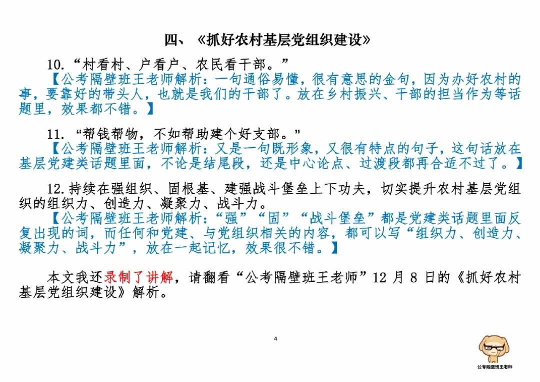 4.《抓好农村基层党组织建设》(12.08日,周四)