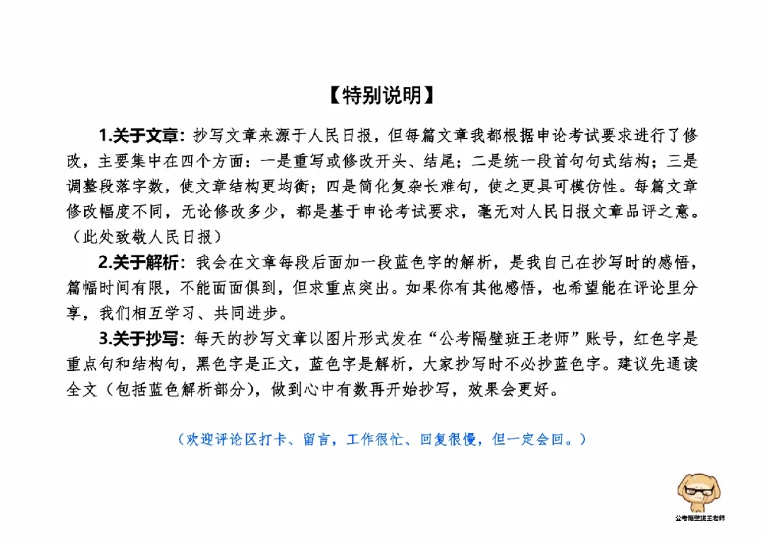 这里是公考隔壁班王老师独创的“每天半小时・申论80分”抄写团,欢迎加入我们!
