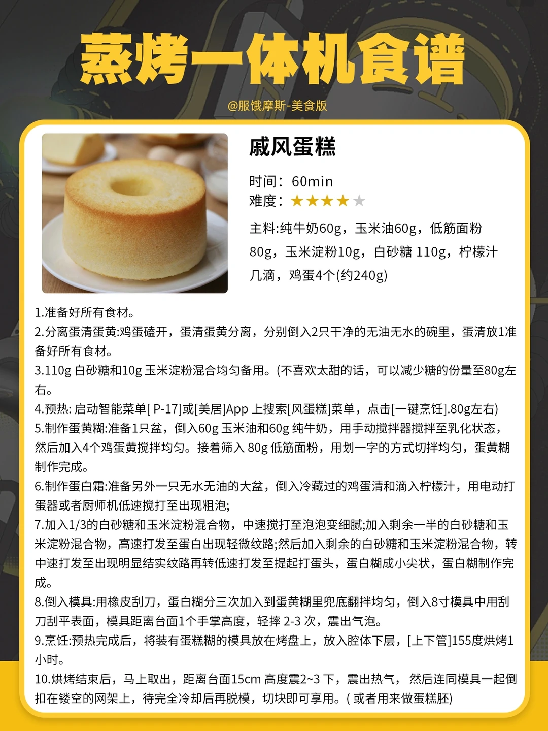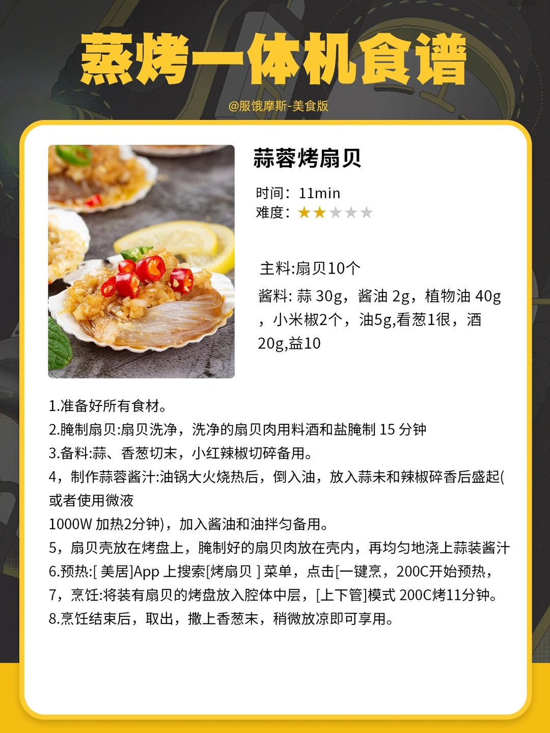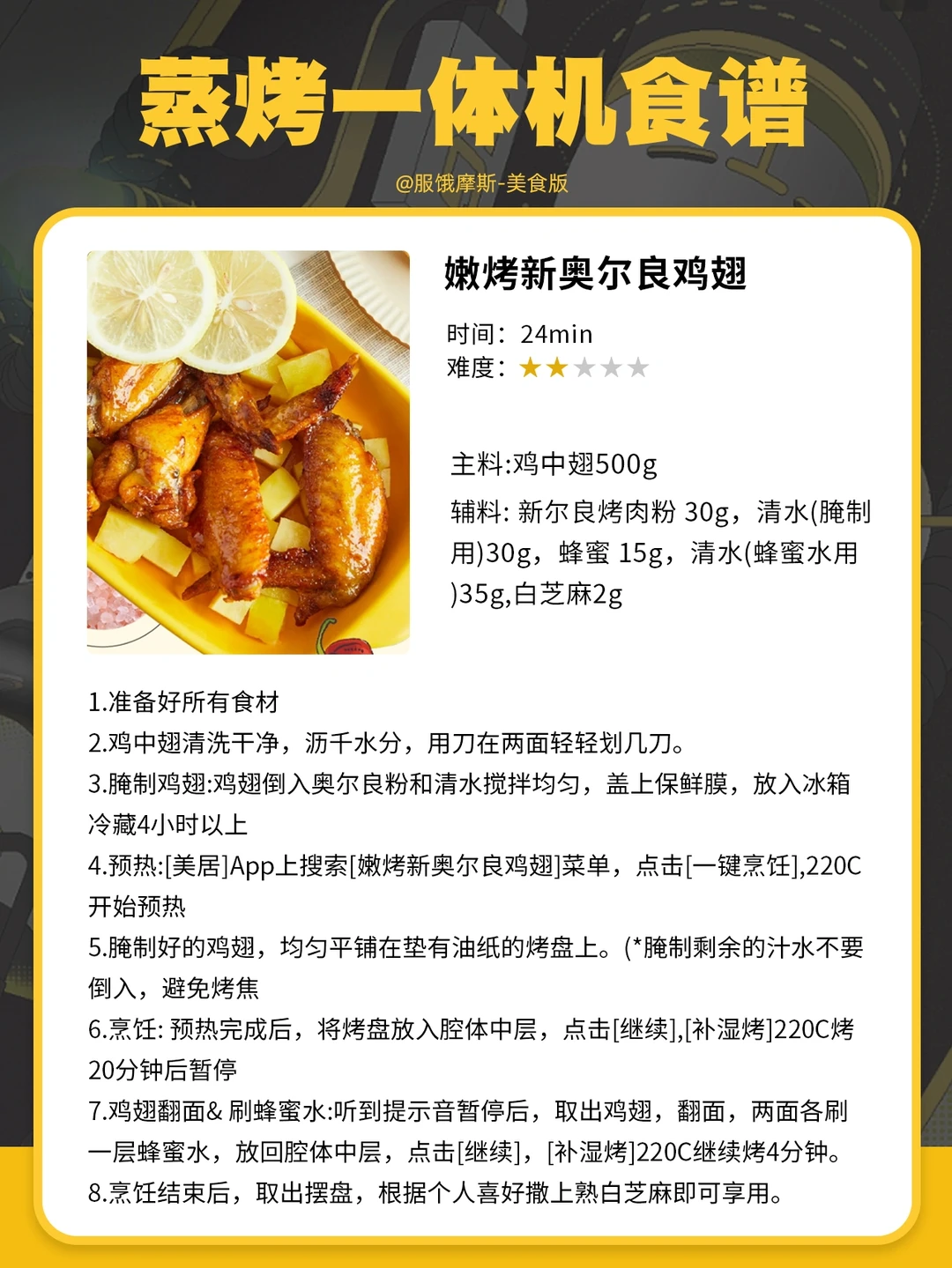 💥主要的一个原因是很容易烤糊或者不熟,因为食谱无法判断出我们自己菜的分量大小,所以食谱上的时间是需要自己去慢慢琢磨的。