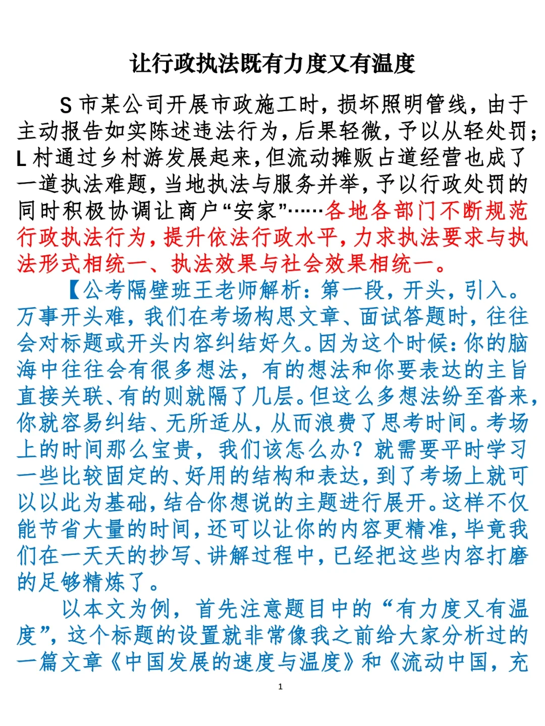 行政执法既是现实中的重要工作,也是公务员考试中重要考点。如果行政执法类只学一篇范文,那我会推荐这一篇。 ⭐️ ⭐️ ⭐️ ⭐️ ⭐️ ⭐️ 这里是公老隔壁班王老师独创的“每天半小时・申论80分”抄写团,欢迎加入我们!