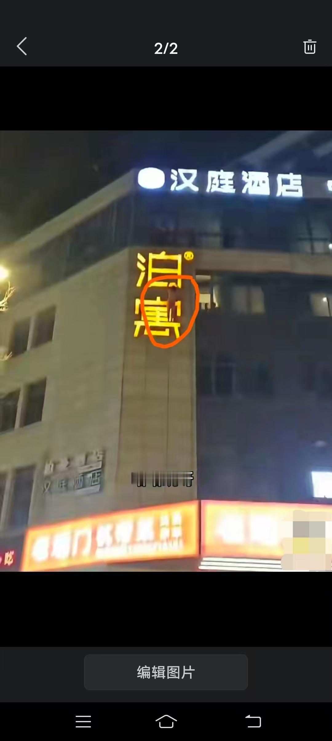 疑似在酒店睡别人的老婆被发现后,男子就这么光着身子站在酒店外墙的灯箱广告上面,等着消防人员过来救援…… 网友不禁调侃:这么危险的操作,如果换做是我被发现了,我宁愿被人家老公揍一顿,没准还能收获意外的惊喜! 让人无语的是:人家都这么尴尬了,戏也让大家免费的看了,拍视频的这个男的还在下面不厚道的嚷嚷着“跳啊,跳啊”,真的是看戏不嫌事大。真要跳下来估计你几个晚上都睡不着了!