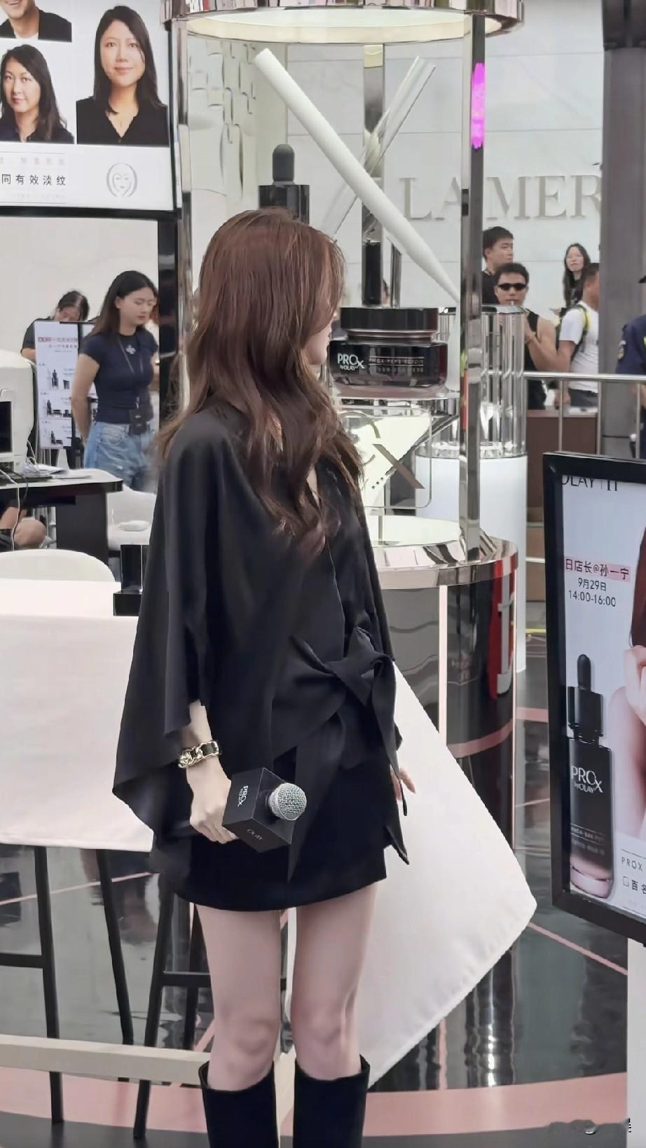 孙一宁身着一袭黑色套装,简约剪裁搭配精致穿搭
