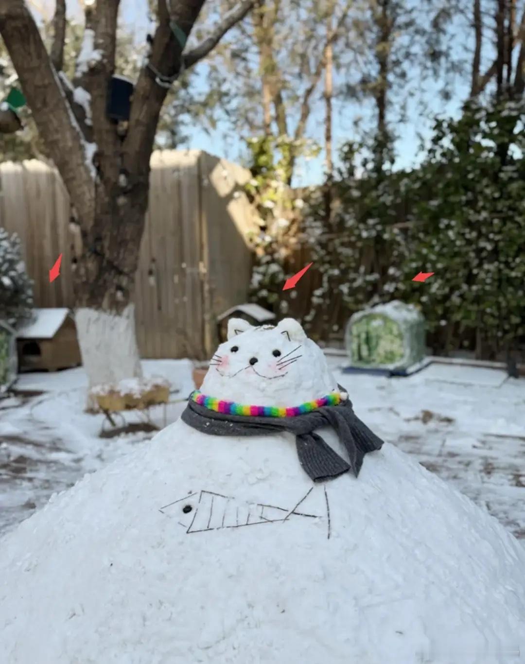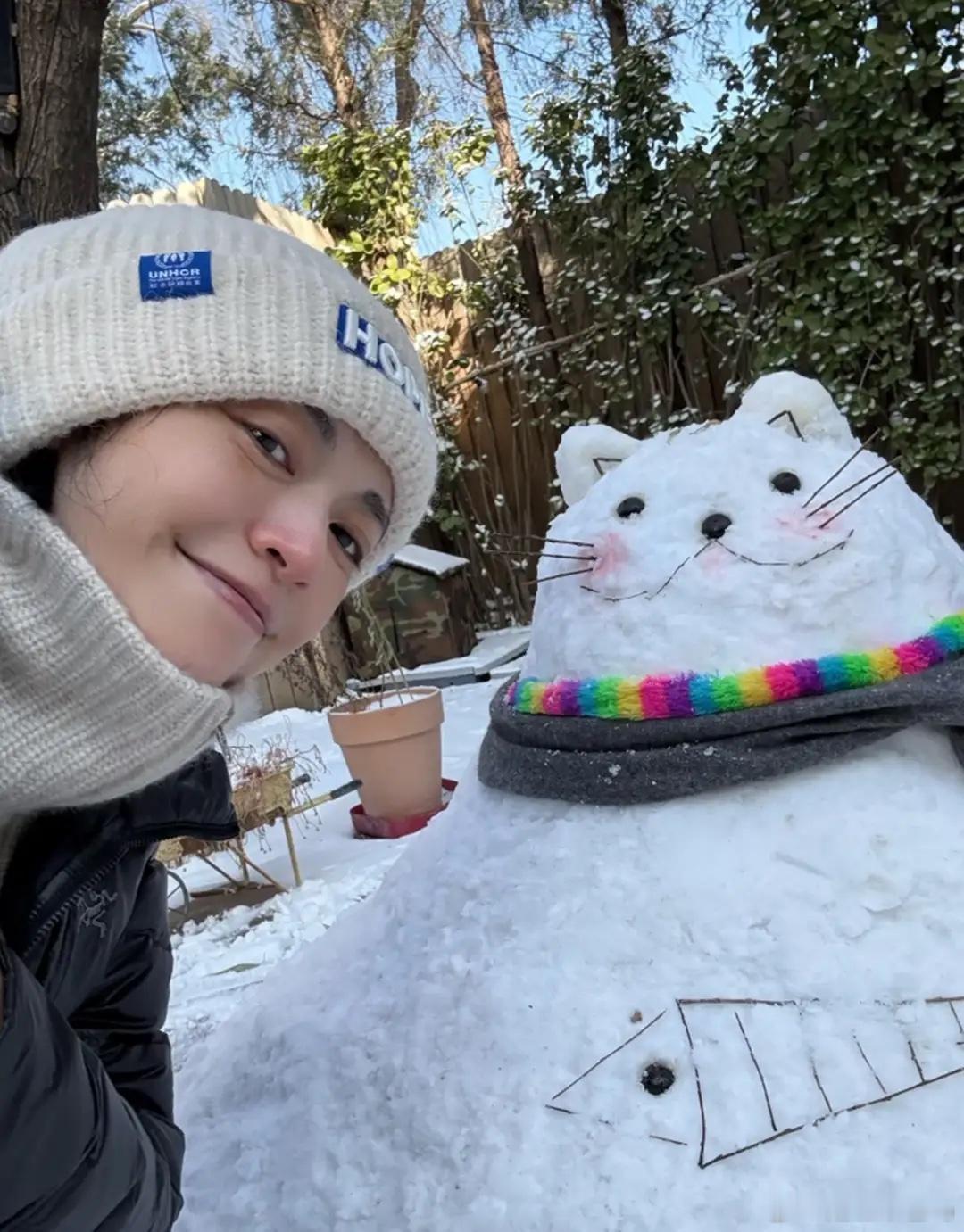 姚晨母子堆雪人,12岁儿子越来越帅,别墅院里全是给流浪猫搭的窝!