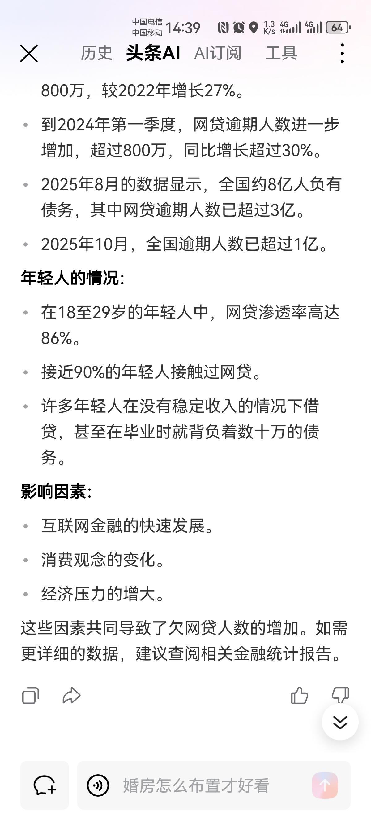 看到这些数据特吓人,全国8亿多人负债,网贷逾期人数竟然超过了3亿。想想,这日子,