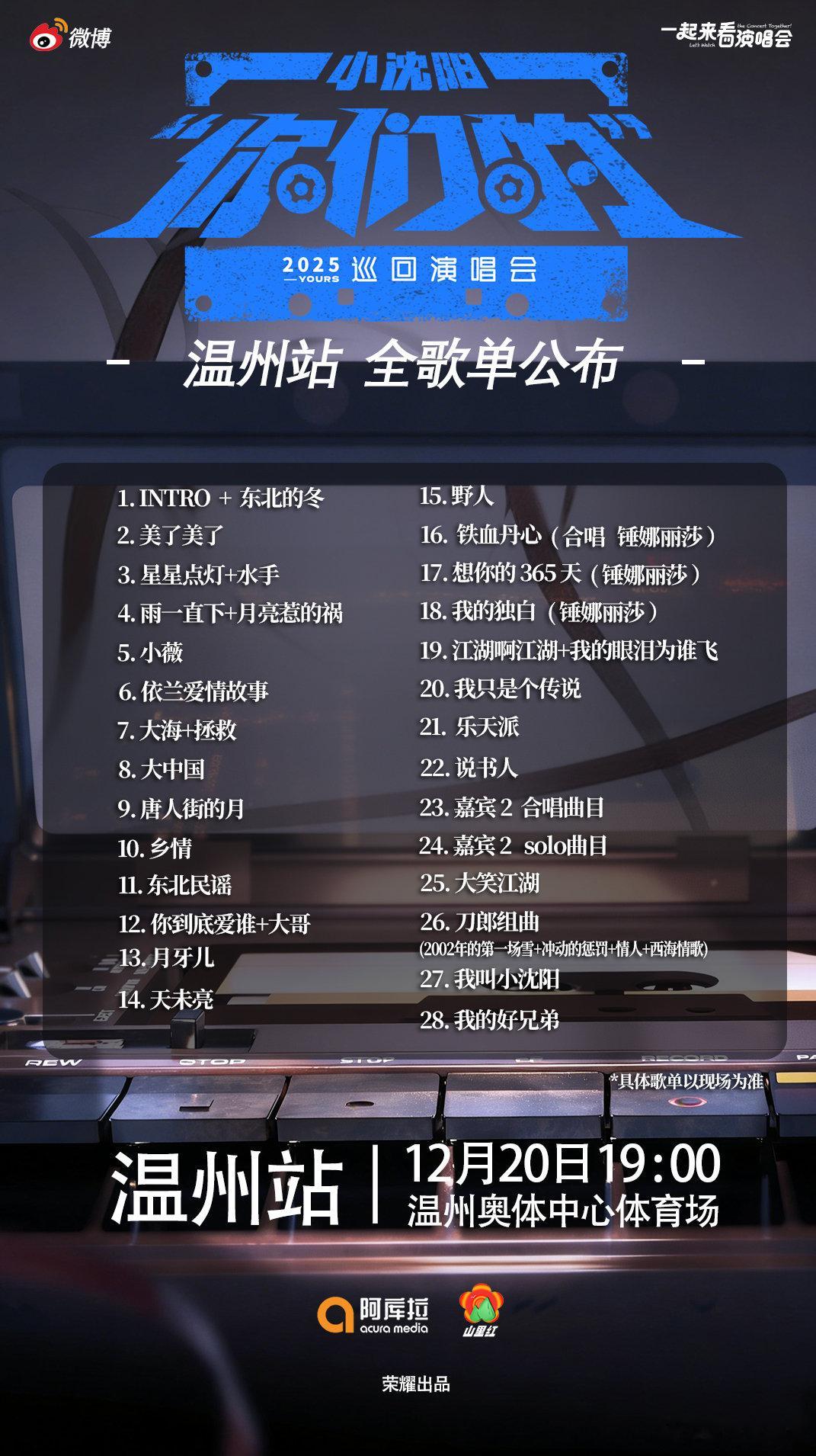 小沈阳温州演唱会小沈阳2025你们的巡回演唱会 “全歌单”今日放送,简直像把点歌