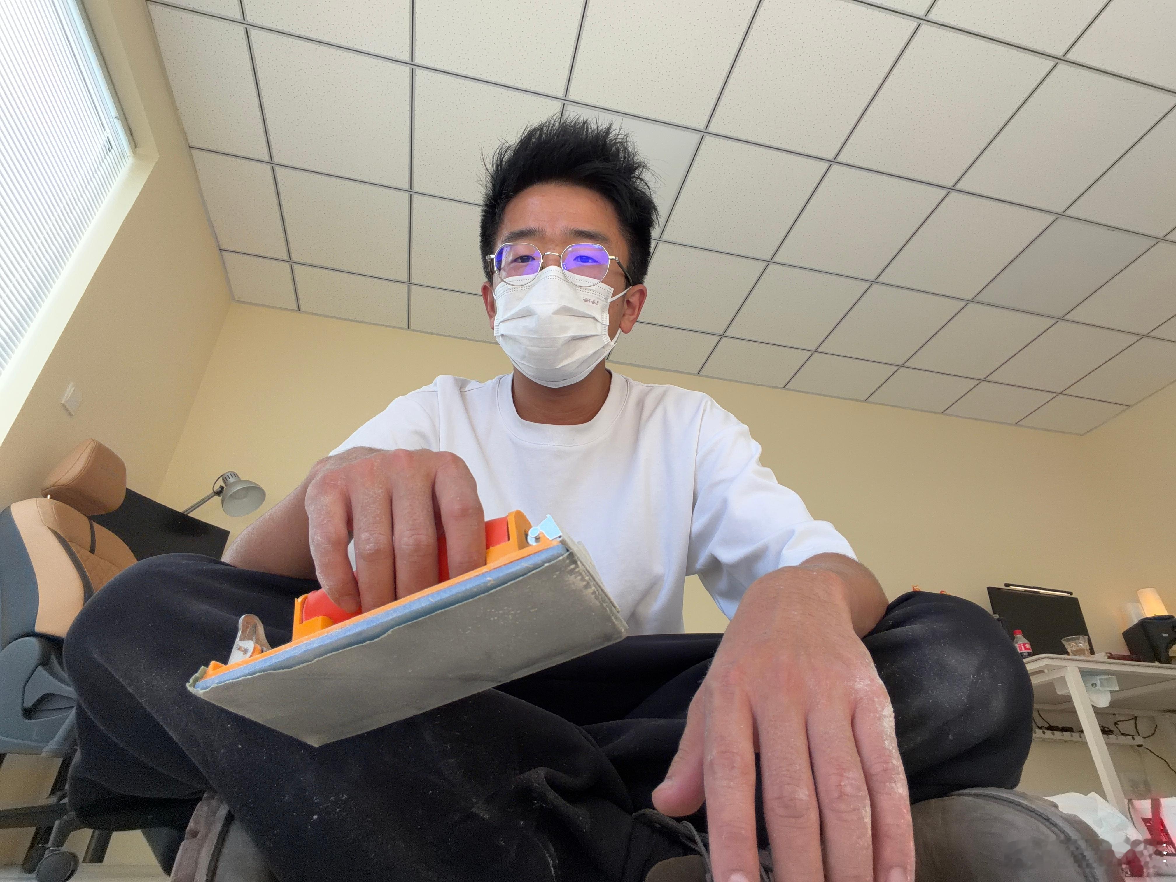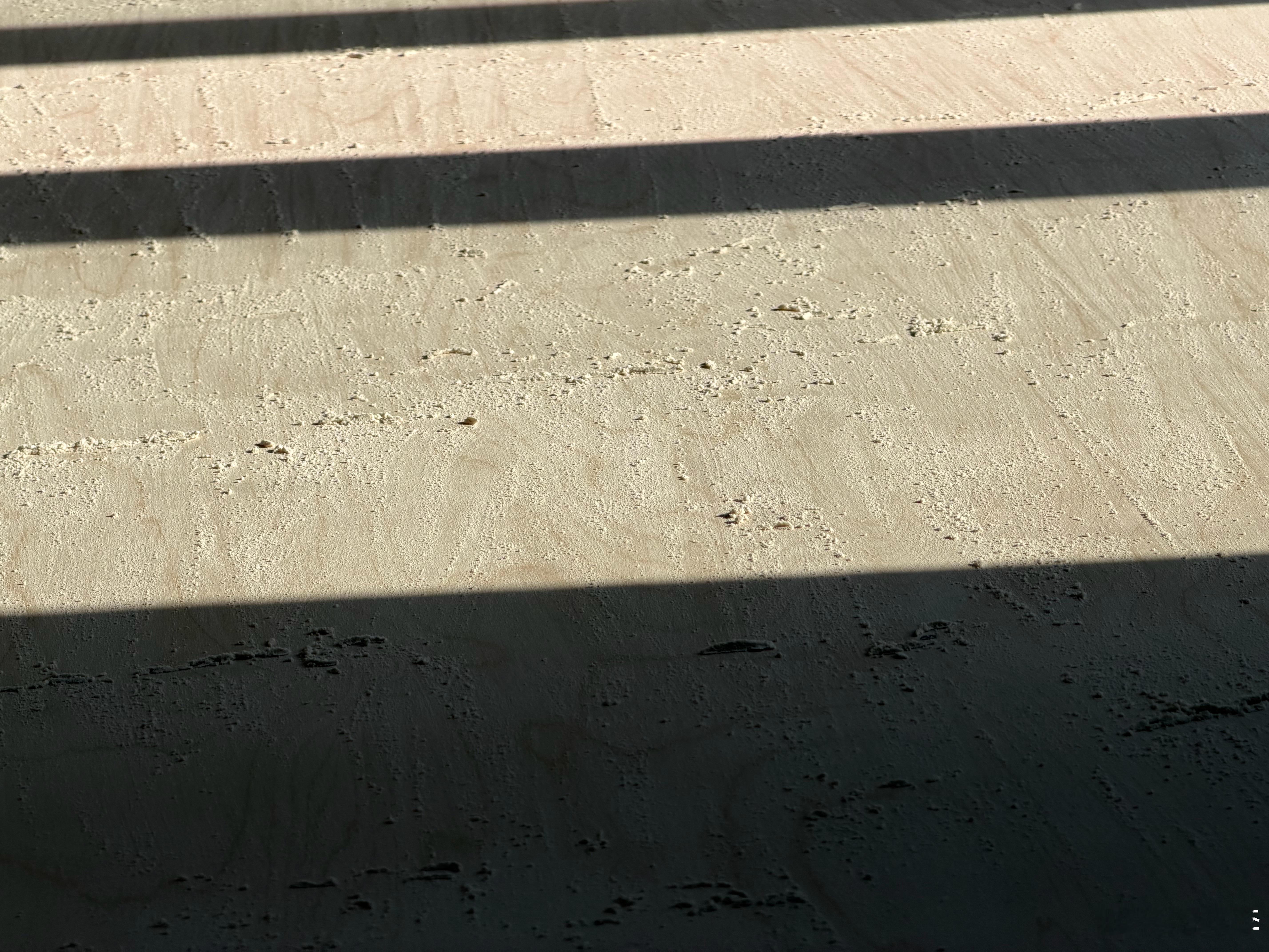 今天终于有时间对大工作台桌板下手了两个 2440×1400×30 的海洋板120kg,我翻都翻不动正反先用 400 目砂纸刨一遍,上木蜡油防水再用 800 目打磨有事儿别碰铝型材 北京