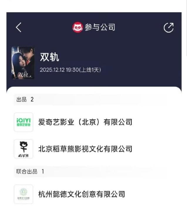 《双轨》的热度已经起来了! 开播第二天到了8300,已经超过了开播好几天的《风与潮》,而且《双轨》这部剧是真的没有找营销公司宣传,据查询参与公司只有两家出品公司,一家联合出品公司,没有找专业的营销公司参与,所以这部剧最多也就平台和主创自己在营销,一般有流量的剧,都会找2-6家不等的营销公司合作,这次可能怕亏钱,既没招商也没营销,成毅的《长安二十四计》找了五家营销公司合作。
