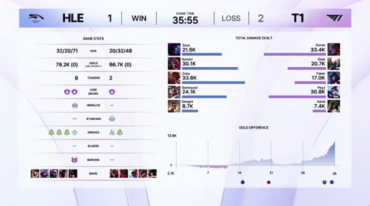 直播吧12月14日讯K杯决赛第三局HLE击败T1扳回一局,赛后数据面板Faker招牌阿狸打出1.7W的全局伤害,仅高于两个辅助。