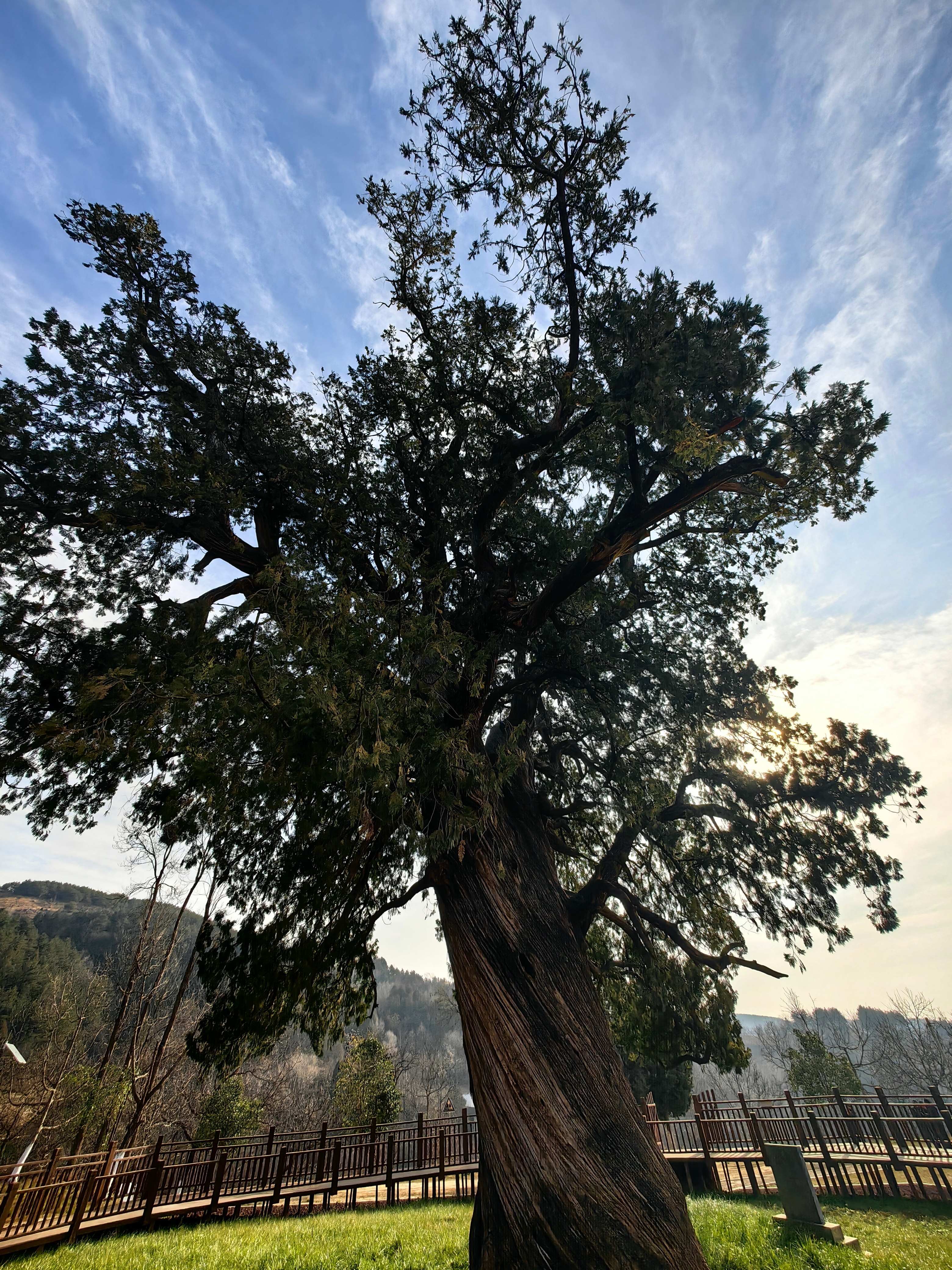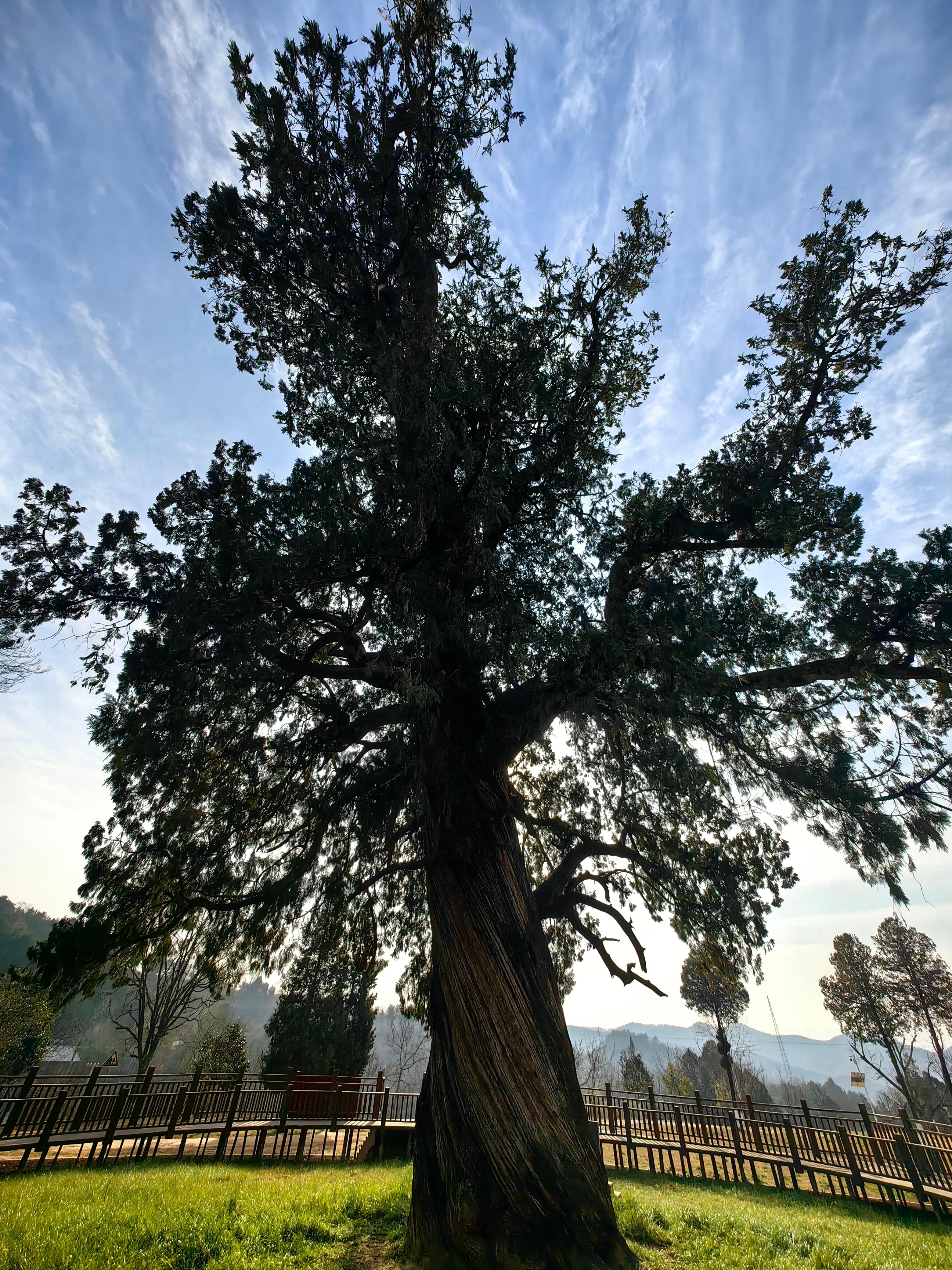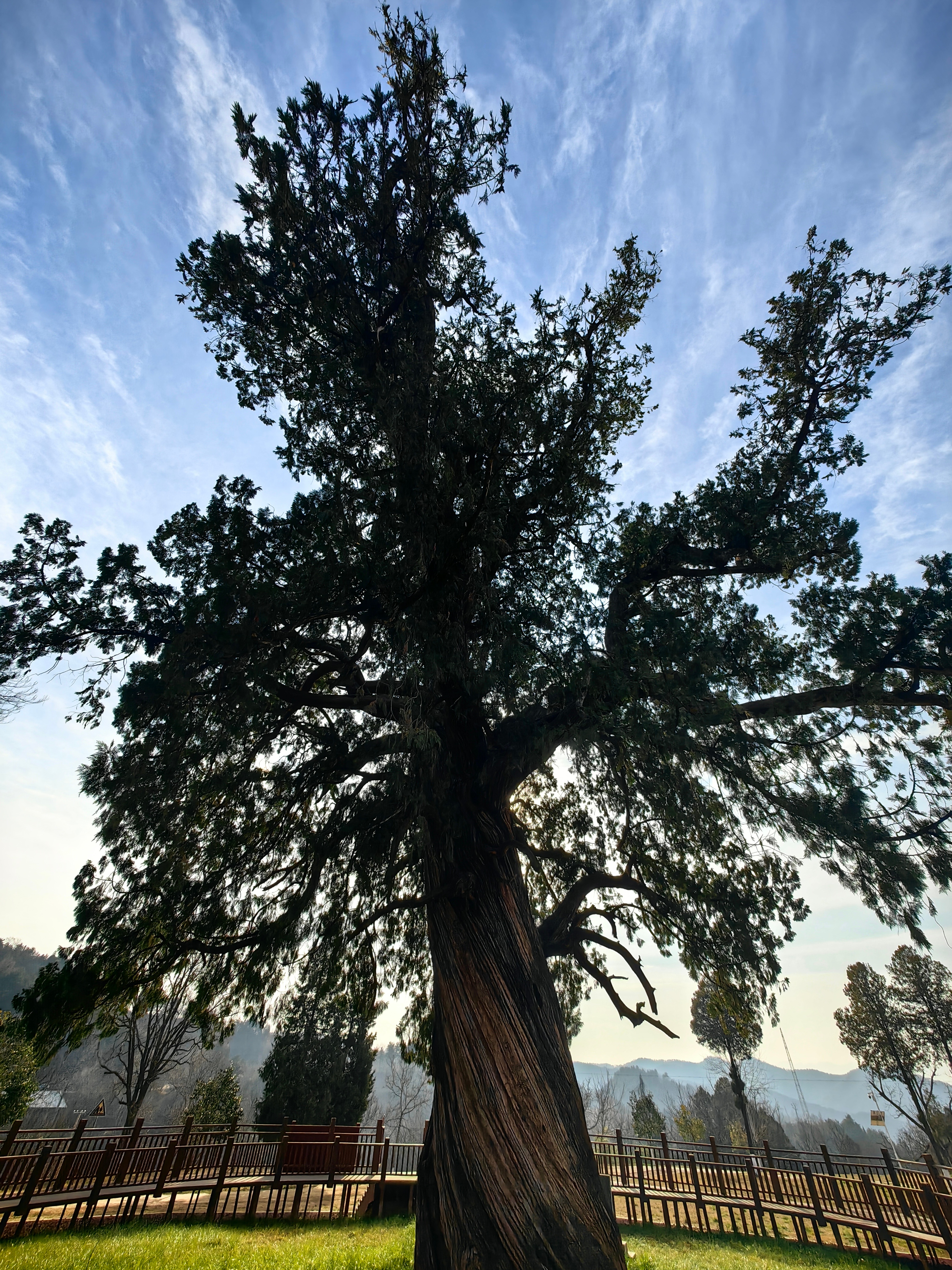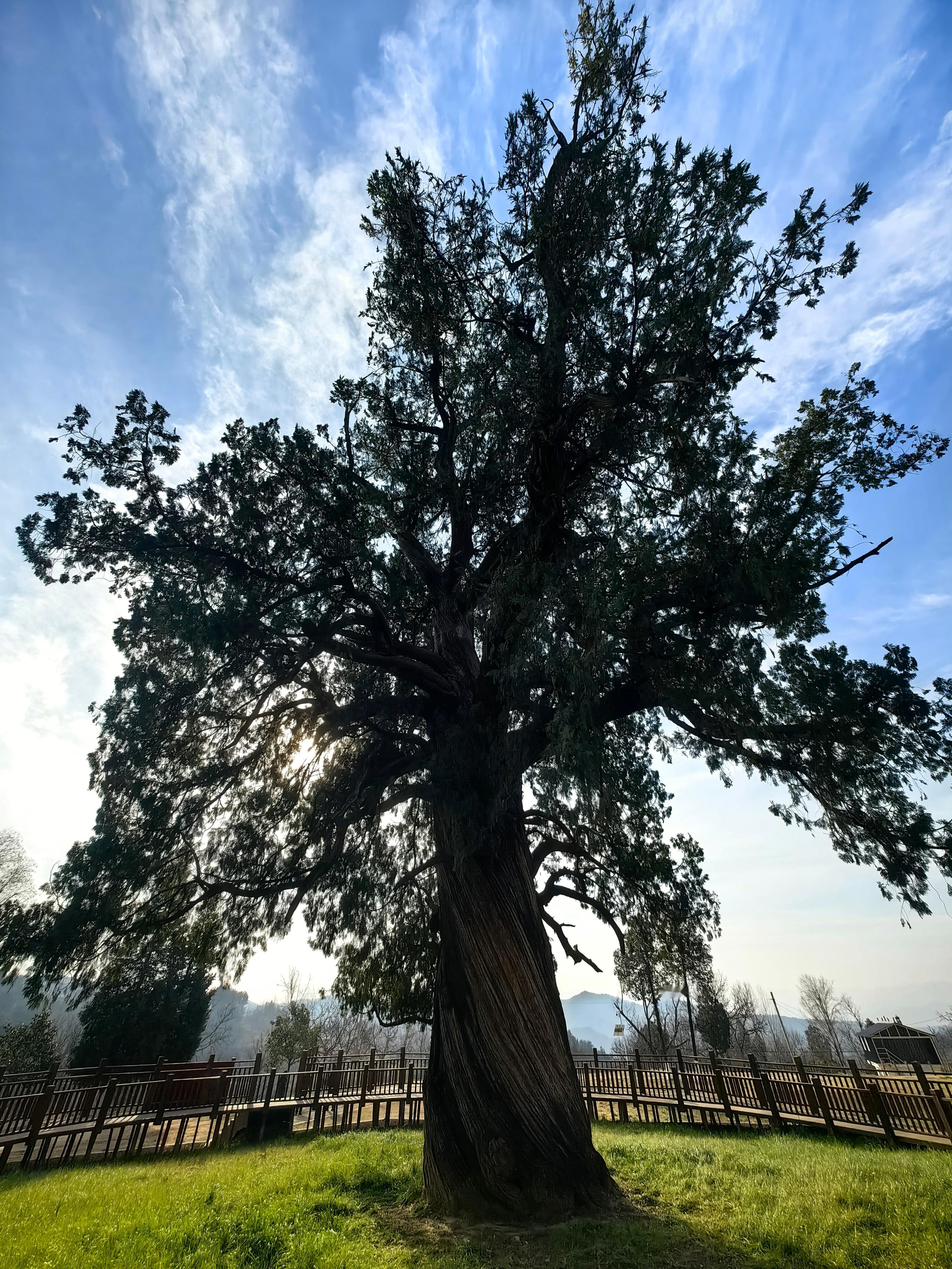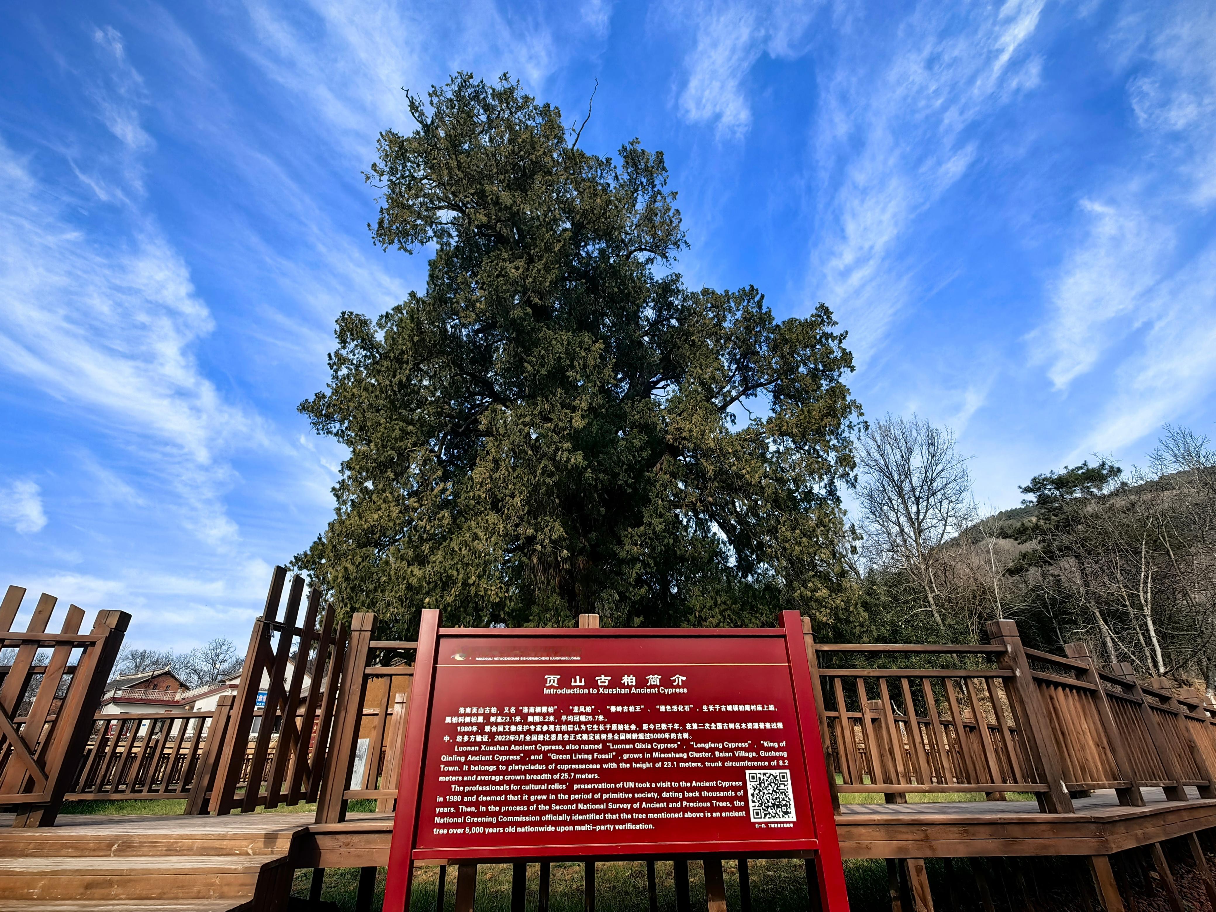 秦岭笑谈洛南页山古柏 · 穿越五千年风雨见证人间奇迹22度商洛中国康养之都 朋友们,猜猜看,一棵树能活多久?在秦岭的深处,答案绝对让你震撼——整整五千年!站在你眼前的,不是什么普通古树,而是国家认证的“秦岭古柏王”,是一棵穿越了中华文明整个长度的“绿色活化石”!看这庞大的身躯!23米高,直超七层楼;8米粗,得五个人手拉手才能合抱。它有三个响当当的名字:因山路蜿蜒如书页的页山得名页山古柏,因树前香火缭绕的栖霞观得名栖霞柏;最绝的是它的模样——东边瞧,枝桠像巨龙探爪俯冲;东南望,树影如凤凰振翅欲飞,所以被当地人尊为龙凤柏!但比外形更传奇的,是刻在它年轮里的那些故事。传说,这是轩辕黄帝亲手种下的树,仓颉造字、伶伦制乐的文明火种,也许就在它的浓荫下点燃;传说,曾有青龙白龙为争夺这棵神柏大打出手,搅得洛水两岸民不聊生,最终龙魂融入树干与山崖,从此镇守一方水土,福泽世代百姓;它更有“神迹”护体:百年前,军阀的锯子白天锯开树身,那道伤口一夜之间就能神奇愈合;那些无视天意强行砍树的人,更是在一阵旋风中消失得无影无踪。至今,树上那道长合的锯齿痕,仍在无声诉说它的神圣不可侵犯。一位清贫道士守护它一生,临终无钱置棺,古柏竟自断一枝,恰好做成一副棺木,不多不少;山西一位乐善好施的财主,家中油瓮里竟能倒映出千里之外这棵古柏的影子,从此千里寻踪而来,世代祭拜守护。五千年,它就这样静静站着。看遍朝代更迭,听尽历史回响。它早已不再只是一棵树,而是一座活着的华夏丰碑!如果你也想亲手触摸五千年的历史温度,聆听风中传来的古老传说,现在就出发!定位陕西洛南,亲眼见证这份跨越千年的生命奇迹! 商洛