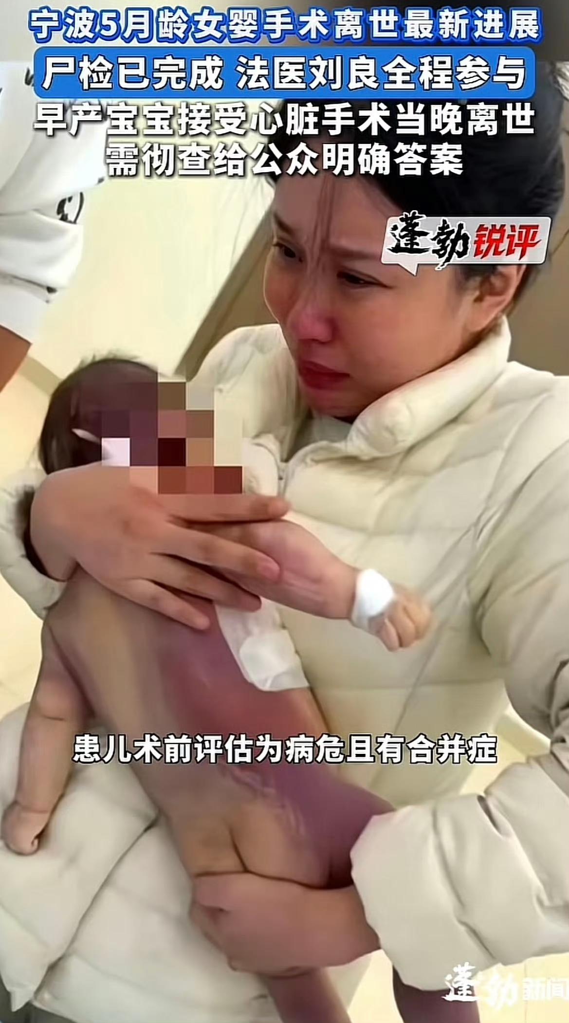 过了早产的难关却还是没能逃脱庸医的魔爪,宁波5月龄女婴术后离世,官方通报4大医疗过失,多人被追责! 5个月大的女婴小洛熙,在宁波大学附属妇女儿童医院接受心脏手术后不幸离世,这则消息让无数网友揪心。 12月14日,宁波市卫健委发布官方通报,直指医疗团队存在多项严重过失,相关责任人已被严肃处理。 通报明确,医疗团队存在术前风险评估不足、术中操作失误、突发情况未告知家属、术后监护处置缺陷四大问题。 涉事医院党委书记被警告,院长记大过,分管副院长被免职;主刀医师、麻醉科主任均被免去职务并暂停诊疗,重症监护病房主管医师也被暂停执业。 据悉,小洛熙是34周+6天的早产儿,因查出心房隔缺损接受手术。家属此前信任该院权威性,却未料手术时长远超预估,术中突发状况未被及时告知,孩子术后不幸离世。 其实涉事医生在今年6月份曾被举报治死过一个1岁大的孩子,院方把此事压下来了,真的没有医德啊! 最让人疑惑的是整个医院的监控都出了问题,手术间广角全景摄像头无存储功能,无法回放;麻醉车监控可回放但仅限局部画面;重症监护室无摄像设备。但官方称配置“符合规定”。 更让家属崩溃的是,孩子离世后不仅遭网暴,想再见最后一面也被拒绝, 目前,尸检和医疗事故技术鉴定正在推进,法院已受理家属诉讼。必须查明全部真相,既还家属公道,也推动医疗行业补齐安全漏洞,不让幼小生命再因失职买单。