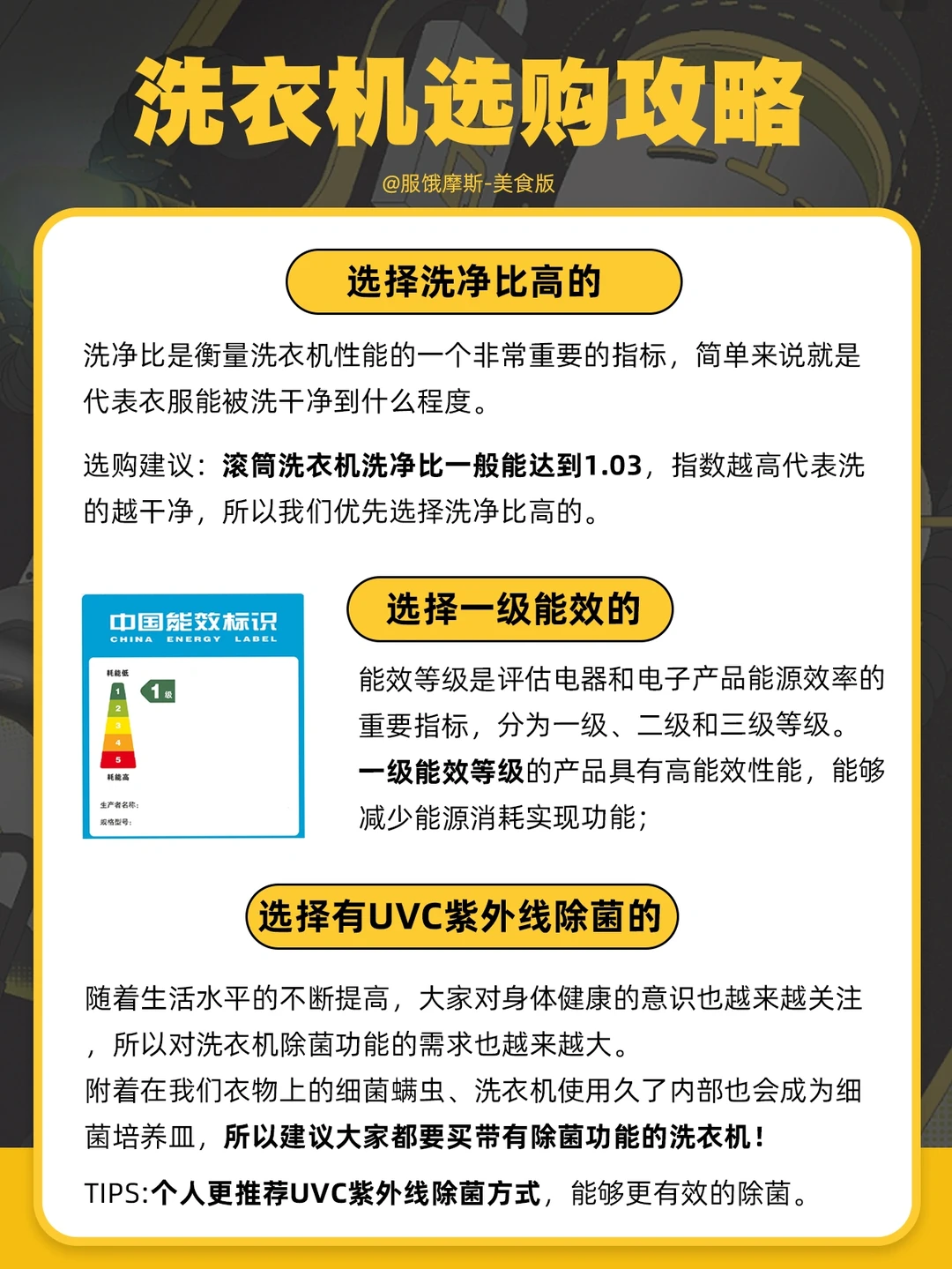 选购建议:滚筒洗衣机洗净比一般能达到1.03,指数越高代表洗的越干净,所以我们优先选择洗净比高的。