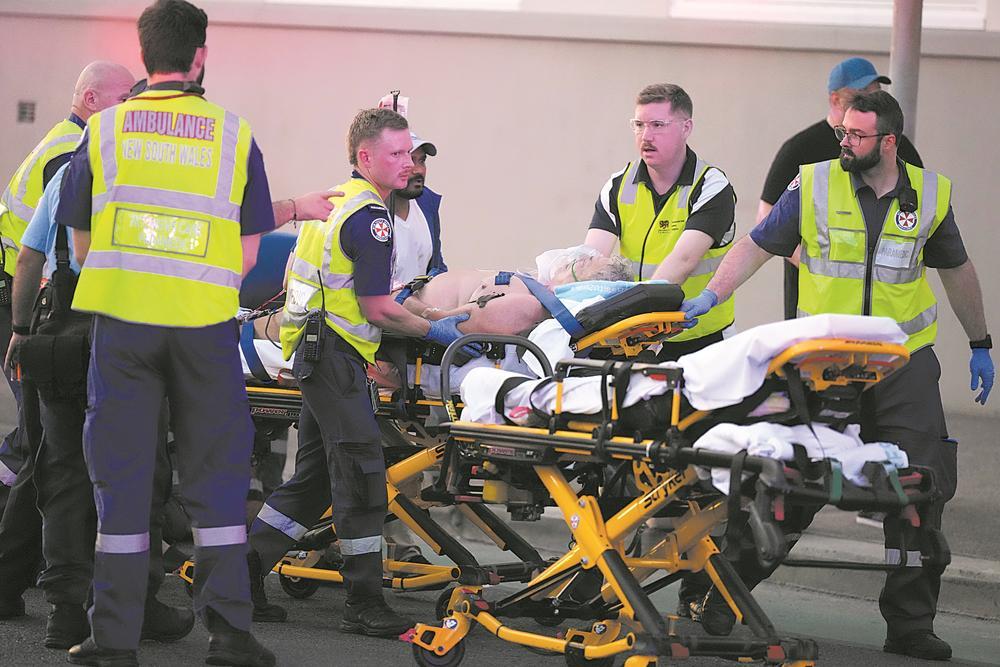 12月14日,在澳大利亚悉尼枪击事件现场,应急人员运送伤员。