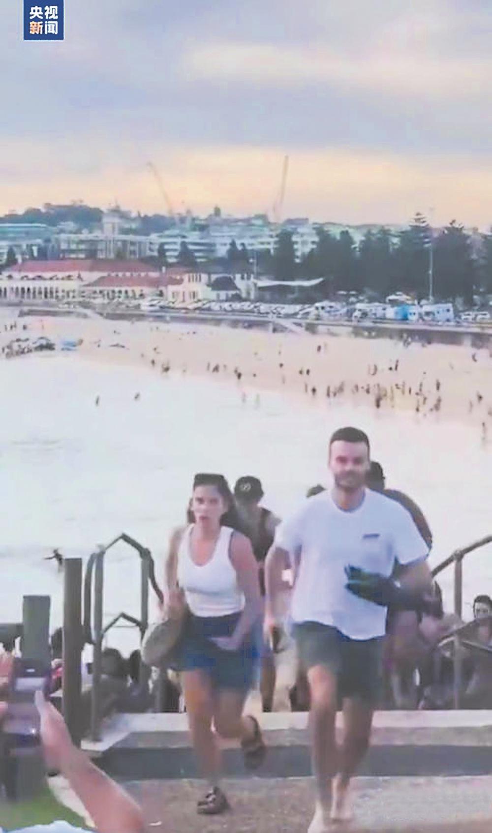 邦迪滩发生枪击事件后,游客惊慌逃离沙滩。