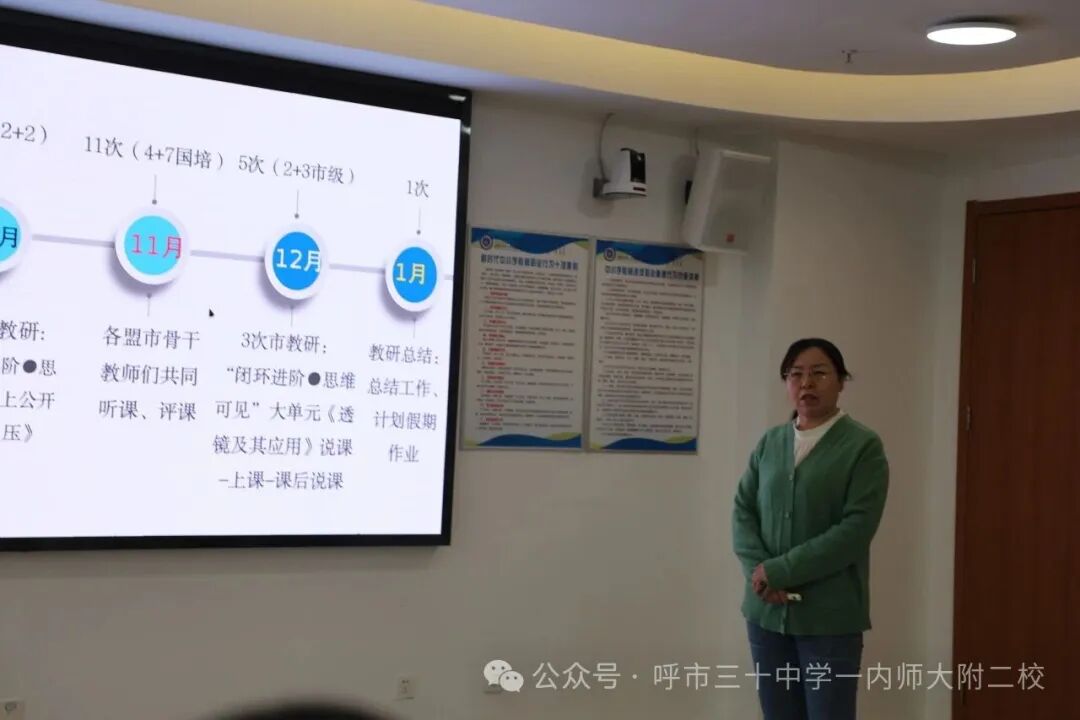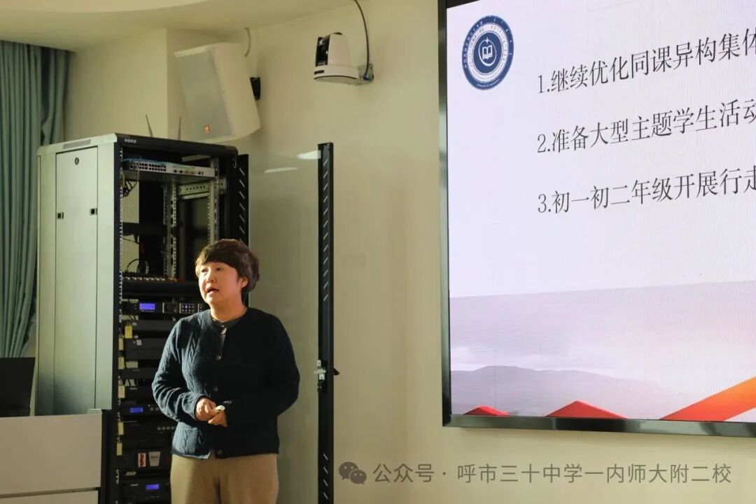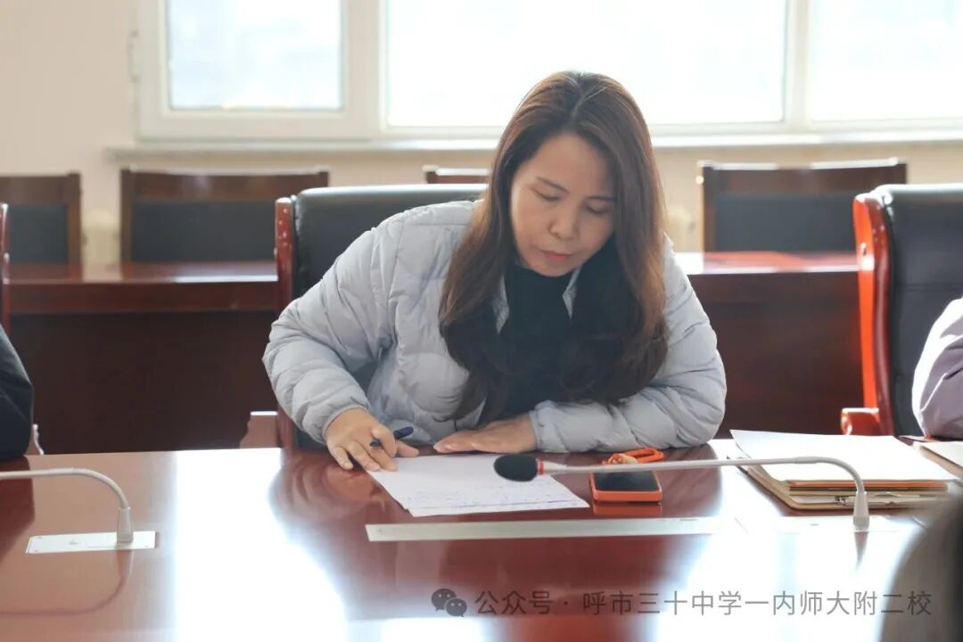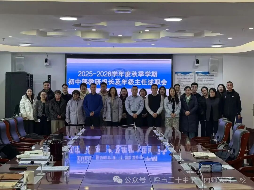 粉笔簌簌记录深耕足迹,教研研讨凝聚育人智慧。为系统梳理学期工作成效、精准查摆问题短板、凝聚新学期发展共识,呼市三十中学一内师大附二校初中部1月14日特召开 2025-2026 学年度秋季学期初中部教研组长及年级主任述职会,本次述职汇报由办公室与初中教务处统筹组织。3 位年级组长与13位教研组长依次汇报。