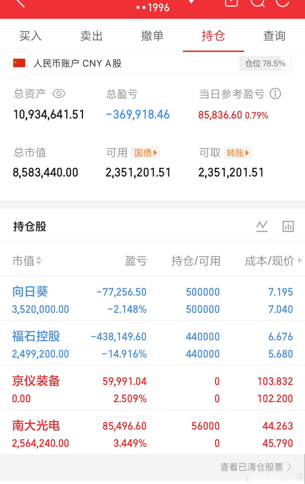 炒股养家是12.15介入:$南大光电(SZ300346)$ 持有:$福石控股(SZ300071)$ 持有:向日葵(SZ300111) 已出: $京仪装备(SH688652)$ 我将用真实账户记录每一天的操作,用行动见证翻倍之路!我相信,实盘就是最好的证明。只要稳扎稳打,终会一路长虹!点赞的发财发财发财火箭火箭火箭今日看盘上证指数a股