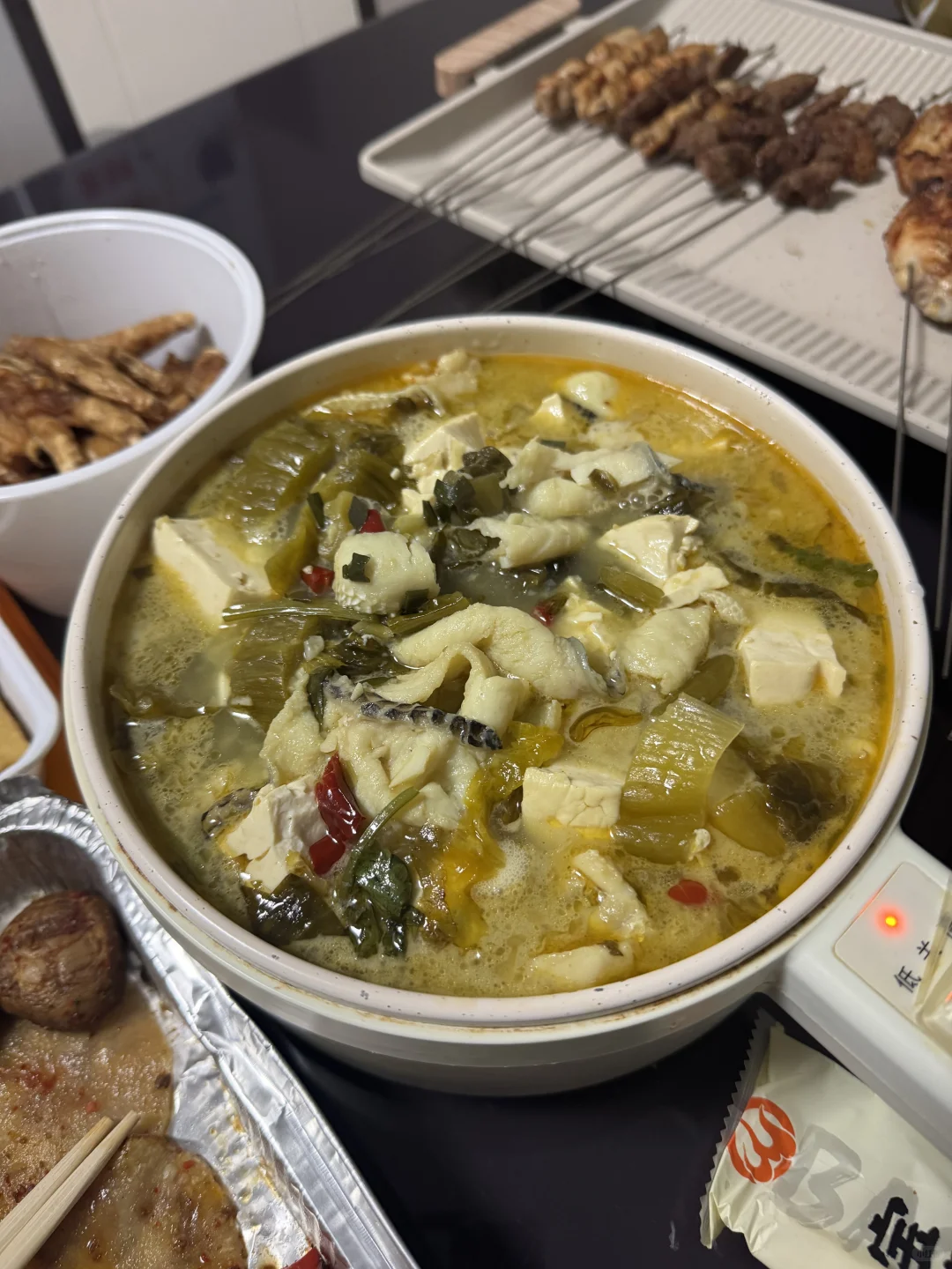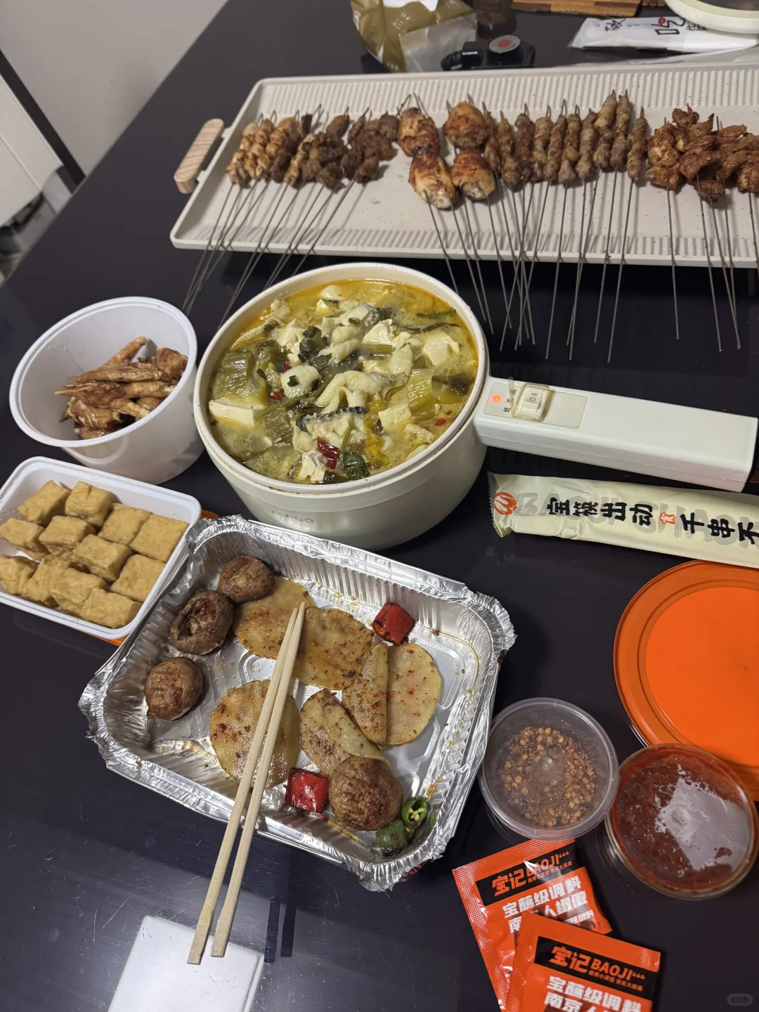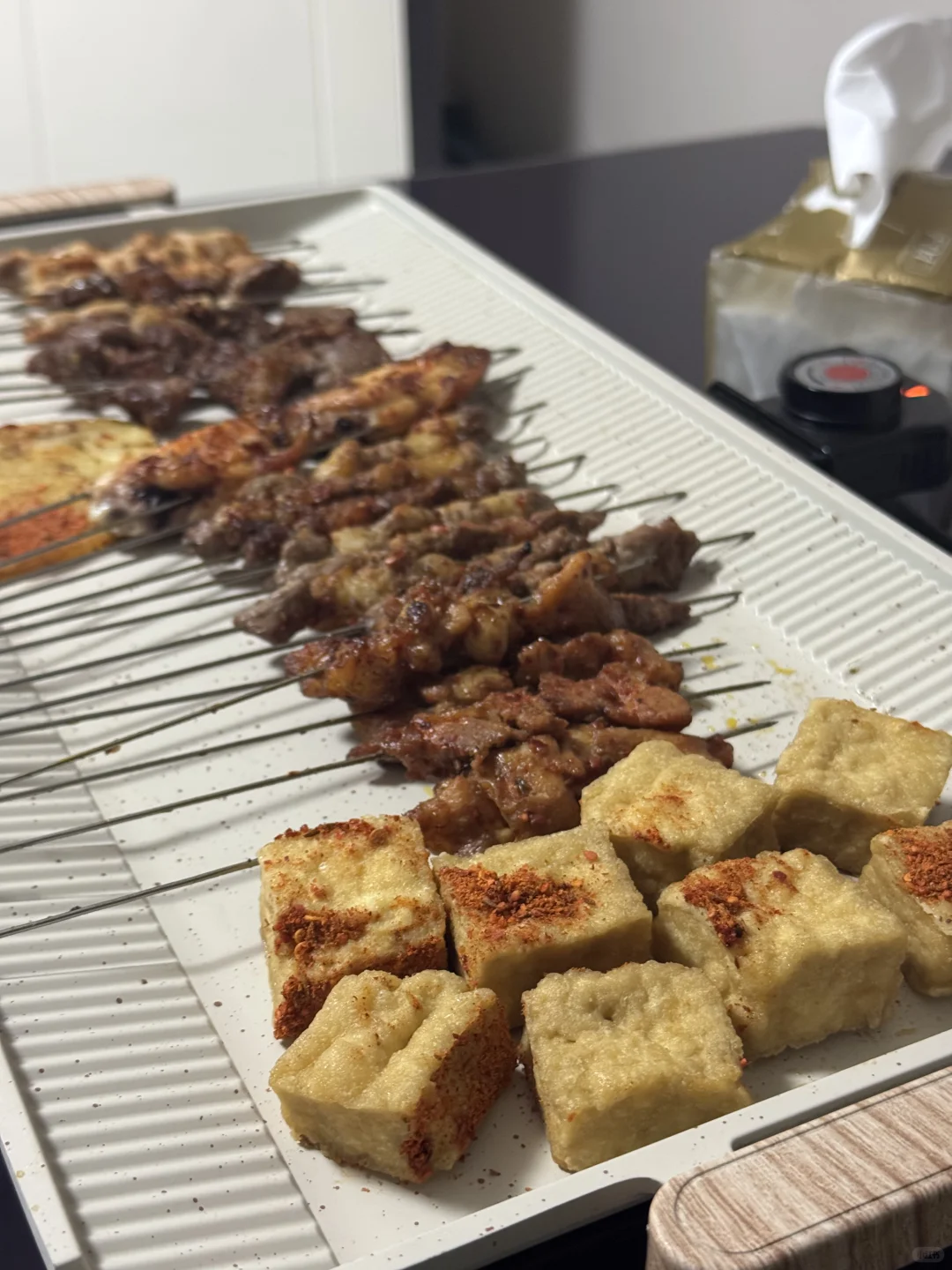 今天是点了烧烤回家烤[笑哭R] 本来和小孩姐商量好下课去吃宝记,结果和数学老师聊嗨了,1点半的课5点才结束[捂脸R],想着周一月考了,还有卷子和背书,有点心疼出门浪费的时间,于是决定外卖回来烤,哈哈貌似很不错