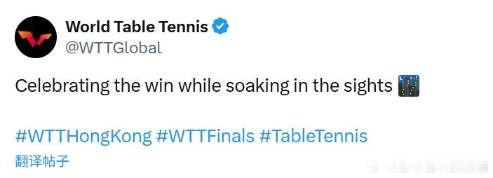 wtt年终总决赛25张本智和 “一边沉醉于眼前的夜景,一边庆祝这场胜利”(机翻)"Capturing the moment 😊🤳"cr: WTT