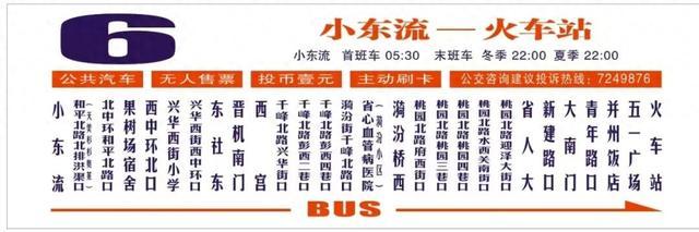 回程方向(火车站-小东流)新增设“西宫”“晋机南门”“东社东”“西中环兴华西街口”“西中环石膏厂街口”“兴华西街小学”“北中环西口”“北中环汾西南路口”“果树场宿舍”共九站,不再停靠和平北路东侧“晋机”站点。