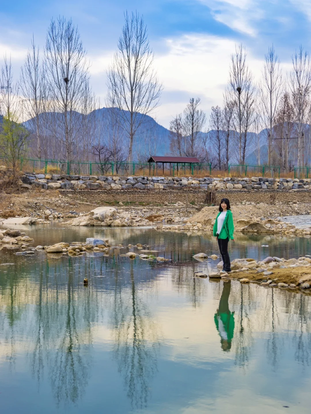 这是怀九河的一段,上游有石滩可以戏水,下游水面较大,水很深,路亚可远投,目视水中有大黑鱼!但可惜我没带杆子好可惜😂看到有台钓大叔上鱼了