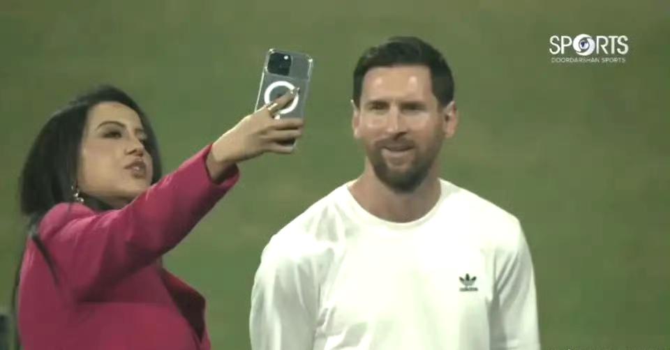 球员梅西印度行,邦长媳妇被批失礼。 据悉,邦长媳妇在球场与梅西合影时嘴含口香糖,