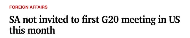 南非媒体关于南非未被邀请参加美国G20峰会首次协调人会议的报道