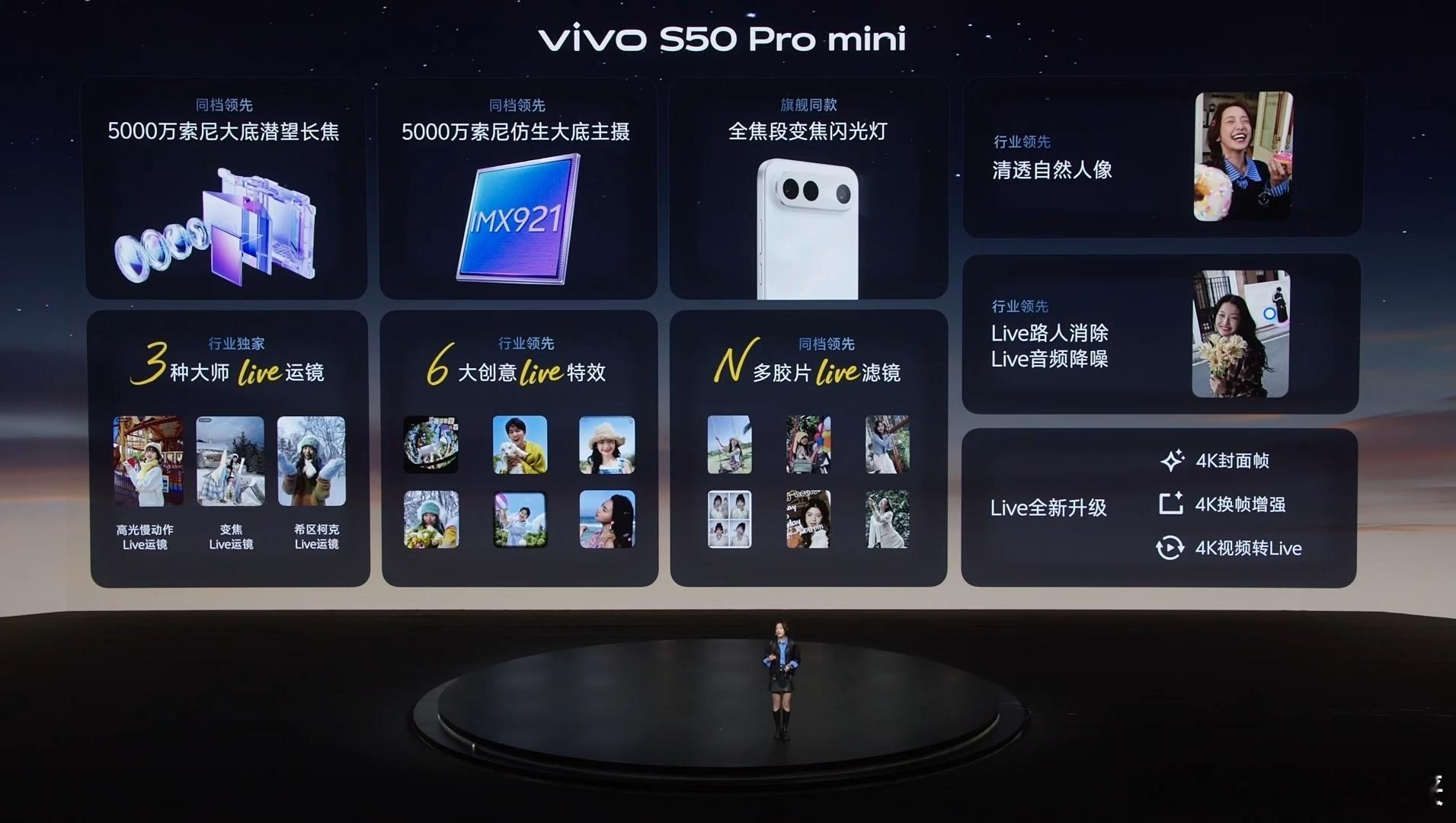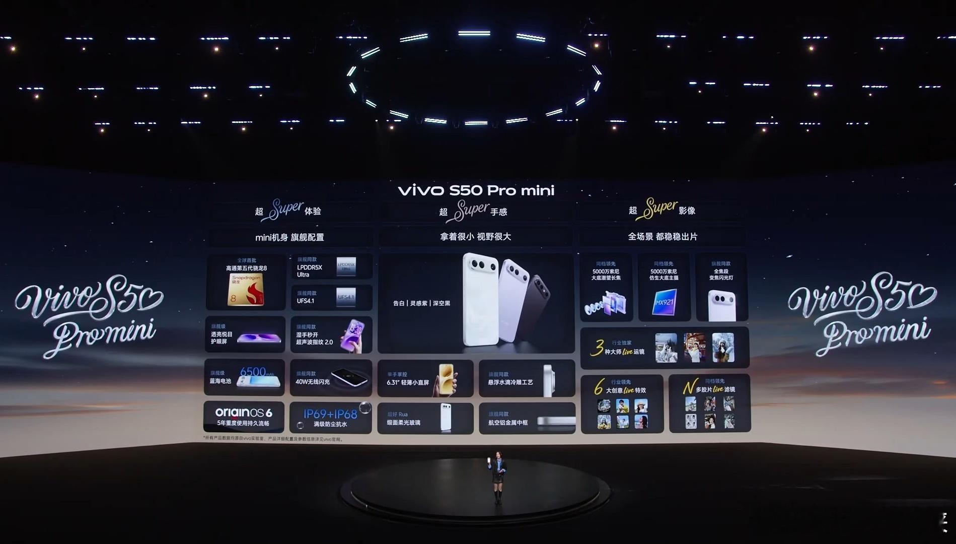 看了vivo S50 Pro mini参数,简直太能打了,6.31英寸小直屏单手拿捏毫无压力,而且镜组挪去了顶部操作比之前顺手多了,冷雕工艺看着就很有质感。性能也没得说,全球首批第五代骁龙8芯片,还有旗舰级内存存储,用着绝对丝滑。最让锐锐惊喜的是mini机身竟然还塞下了6500mAh大电池,90W超快闪充+无线闪充全都有,续航完全不用慌。影像配置也超顶,索尼大底主摄外加自研感光技术,夜拍清晰又防抖,全焦段变焦闪光灯补光超自然。还有超多Live运镜、特效和滤镜,拍照玩法直接玩出花,真的越看越想冲!
