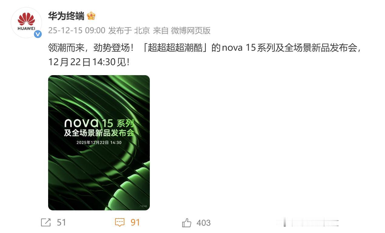 nova 15系列这波真的藏不住了!现在就能预订,12月22日正式发布,感觉马上
