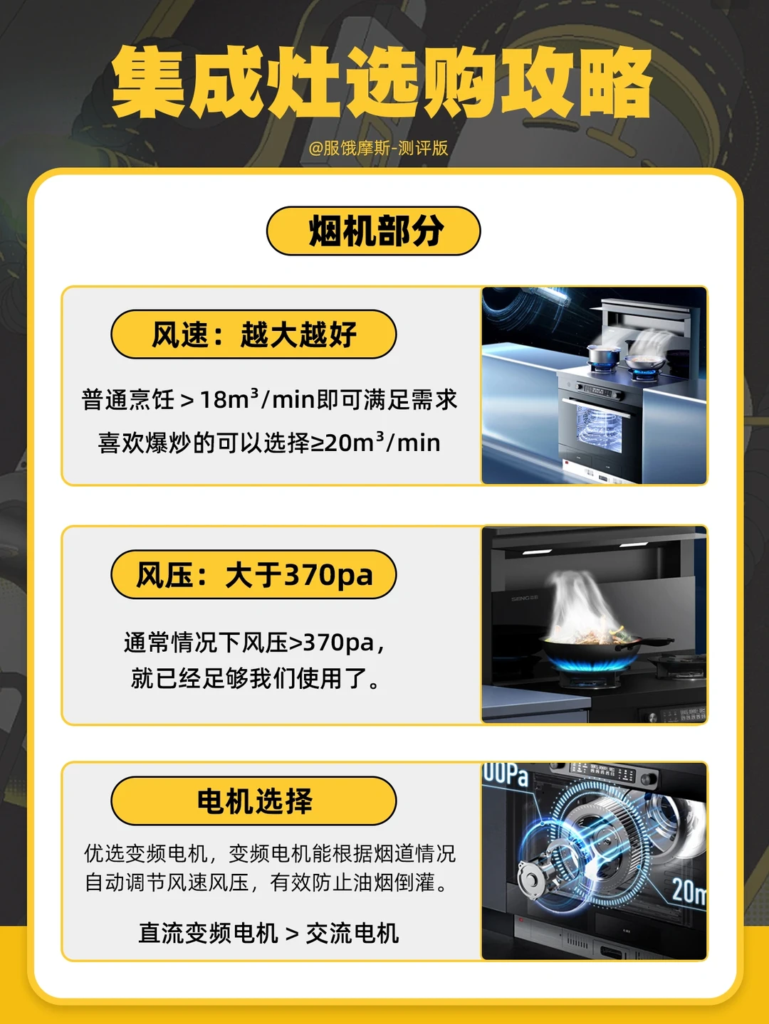 ⭐风速:普通烹饪>18m³/min即可满足需求,喜欢爆炒的可以选择≥20m³/min。