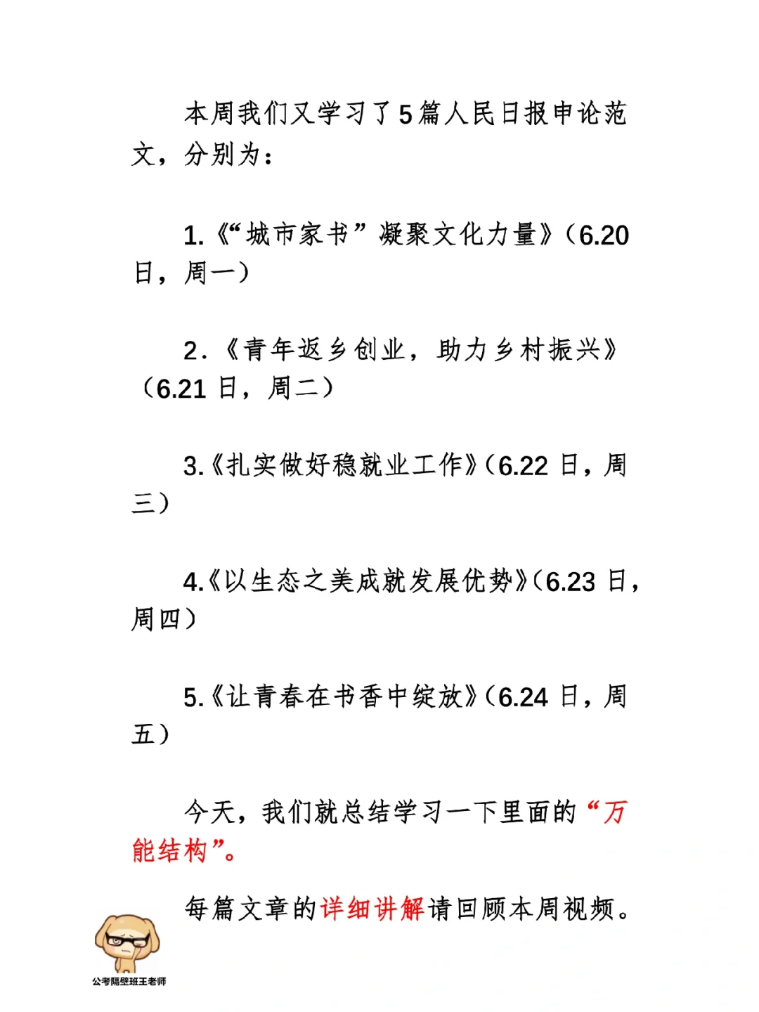 本周我们又学习了5篇人民日报申论范文,分别为: