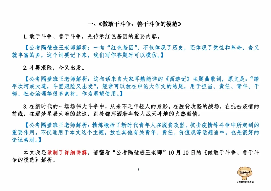 1.《做敢于斗争、善于斗争的模范》(10.10日,周一)
