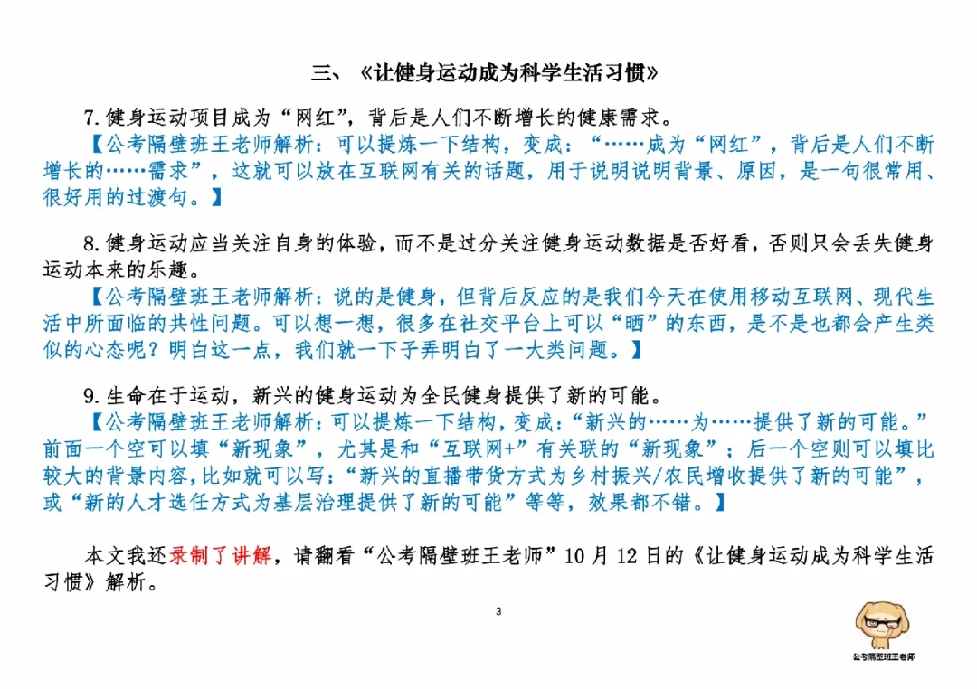 3.《让健身运动成为科学生活习惯》(10.12日,周三)