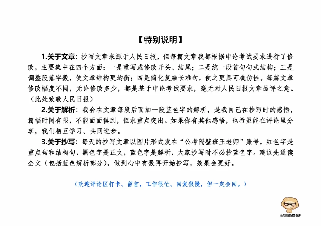 这里是公考隔壁班王老师独创的“每天半小时・申论80分”抄写团,欢迎加入我们!