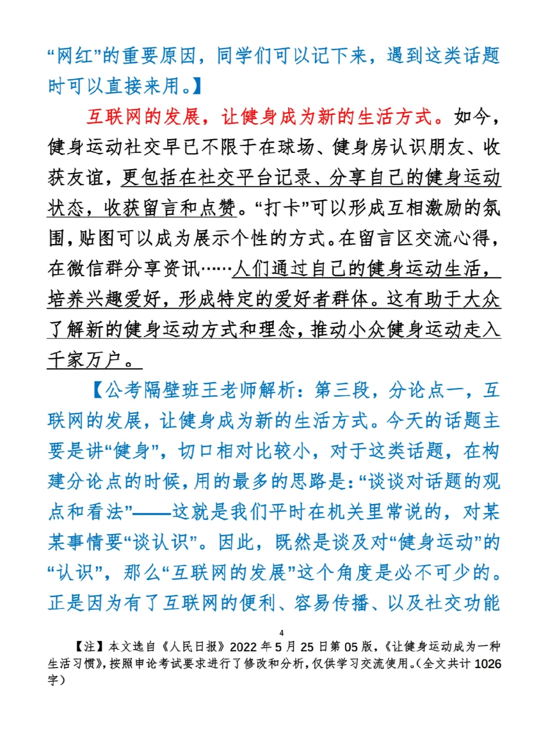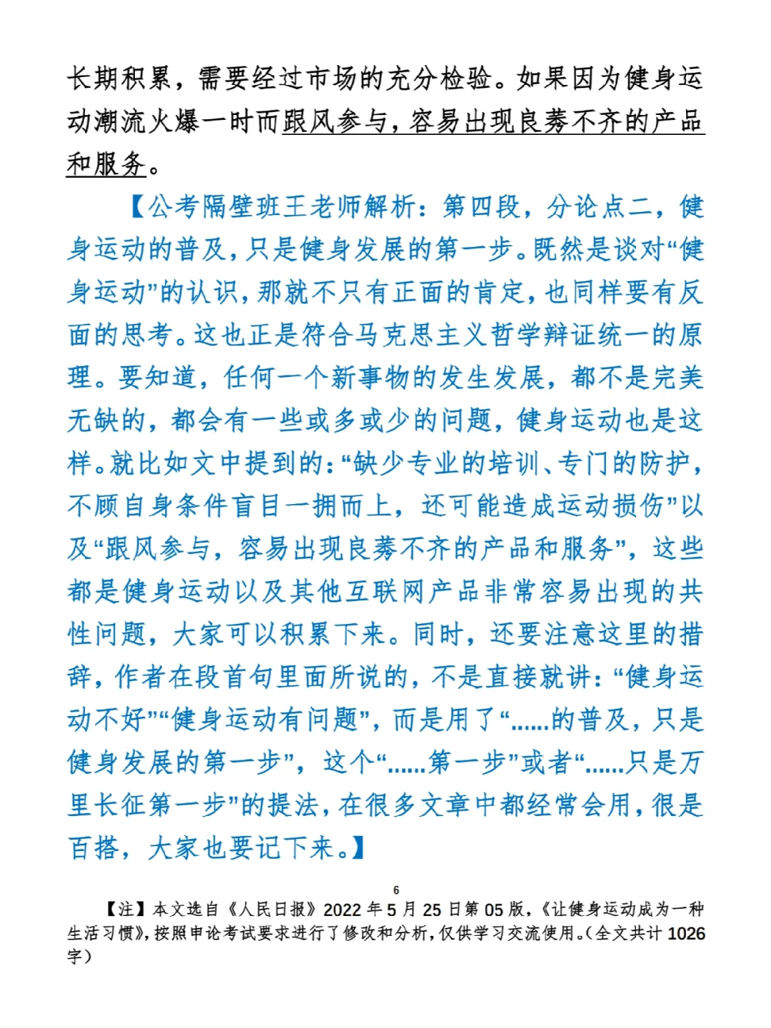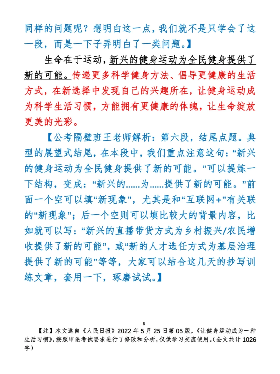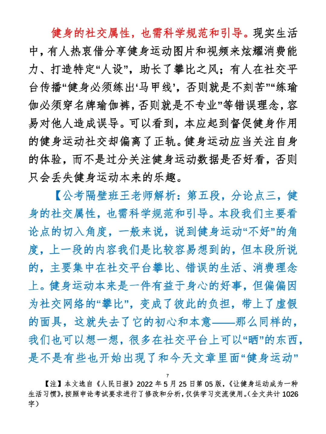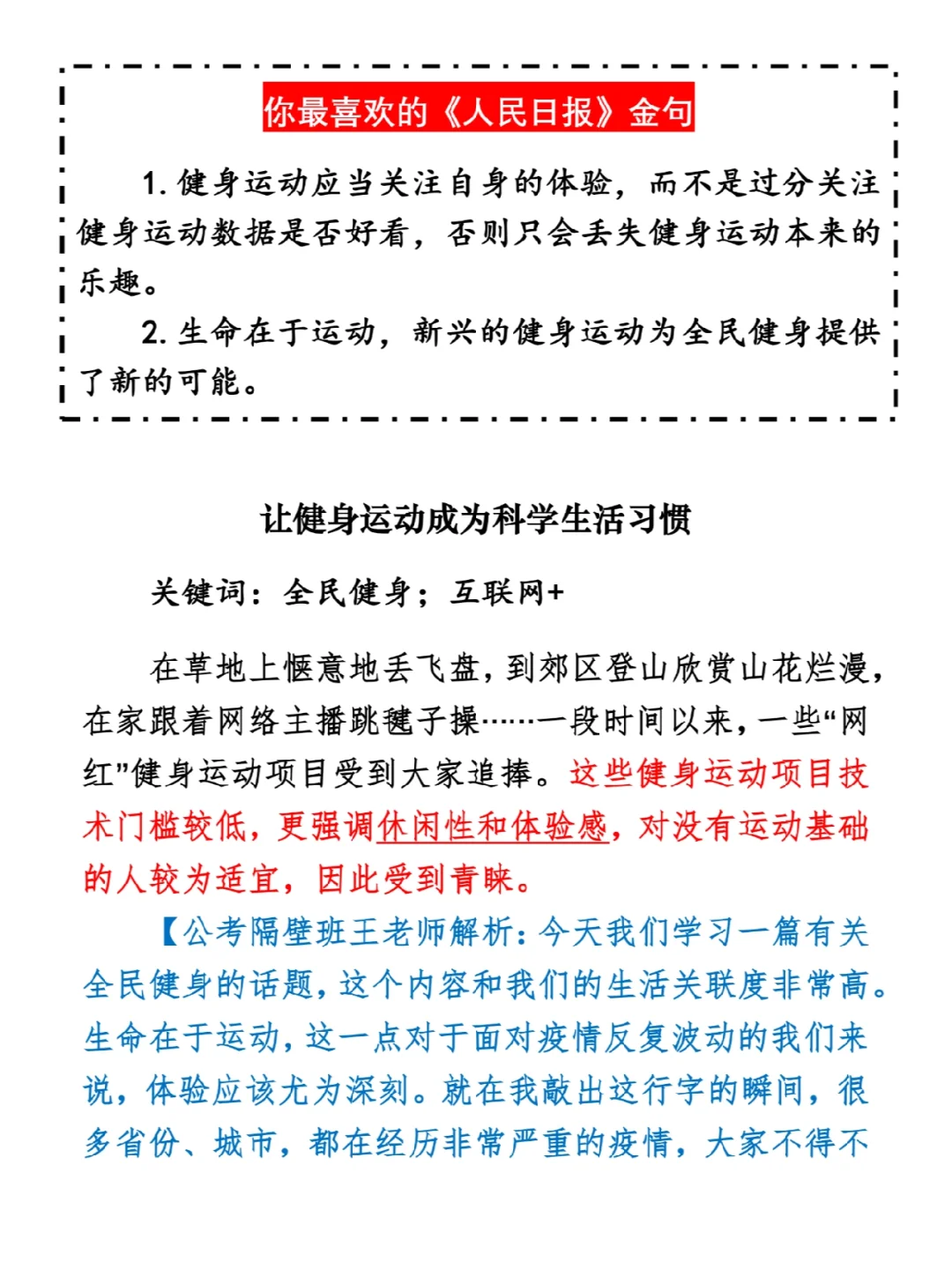 如何抄写:每天的抄写文章以图片形式发在“公考隔壁班王老师”账号,红色字是重点句和结构句,黑色字是正文,蓝色字是解析,大家抄写时不必抄蓝色字。建议先通读全文(包括蓝色解析部分),做到心中有数再开始抄写,效果会更好。