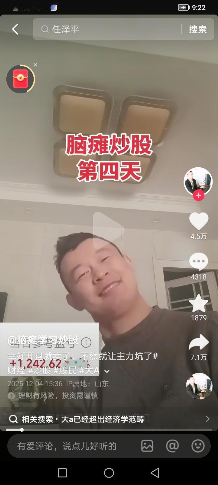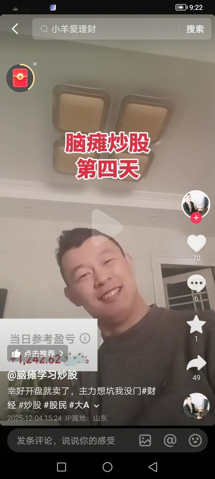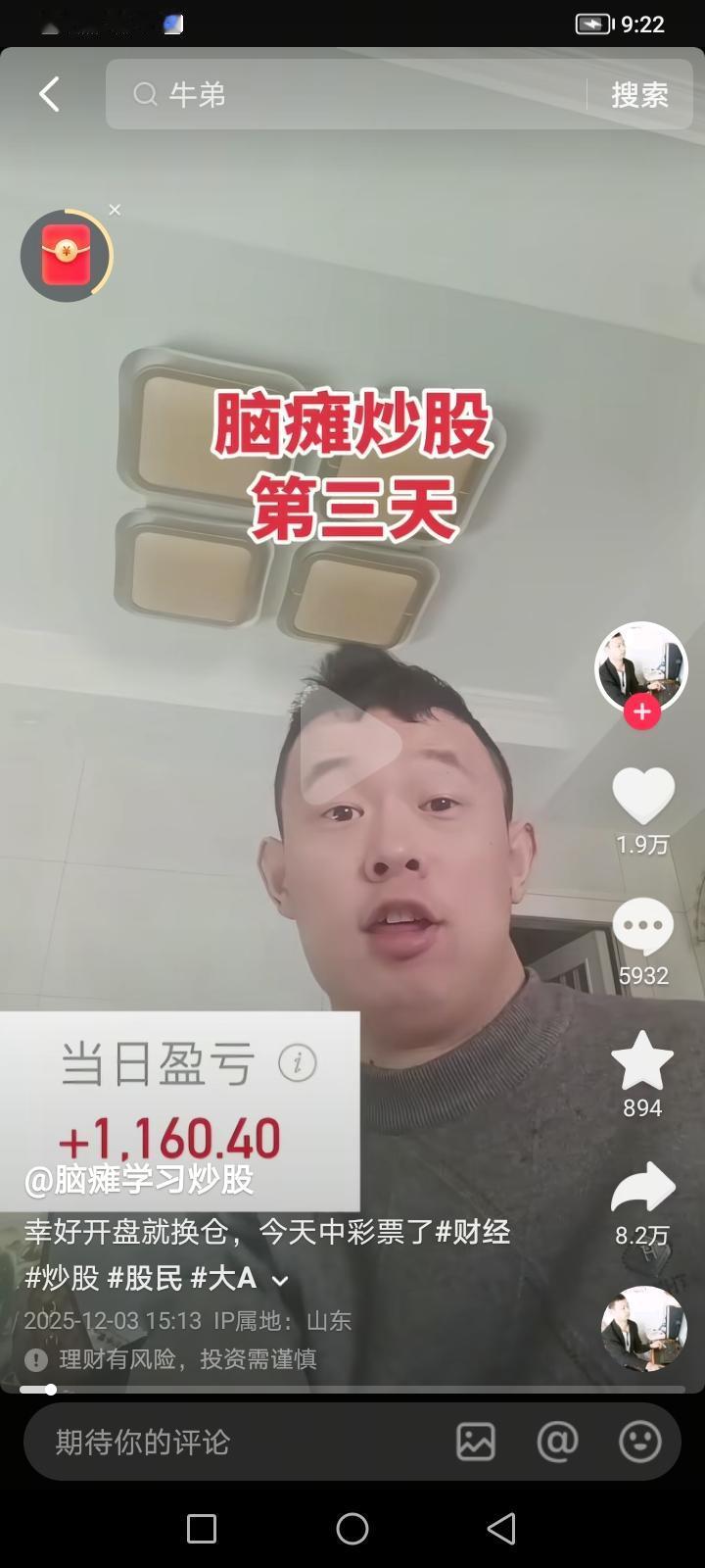 这几天炒股的那些博主都要崩溃了,一位得脑瘫的人来炒股,他炒股12天,基本天天在赚