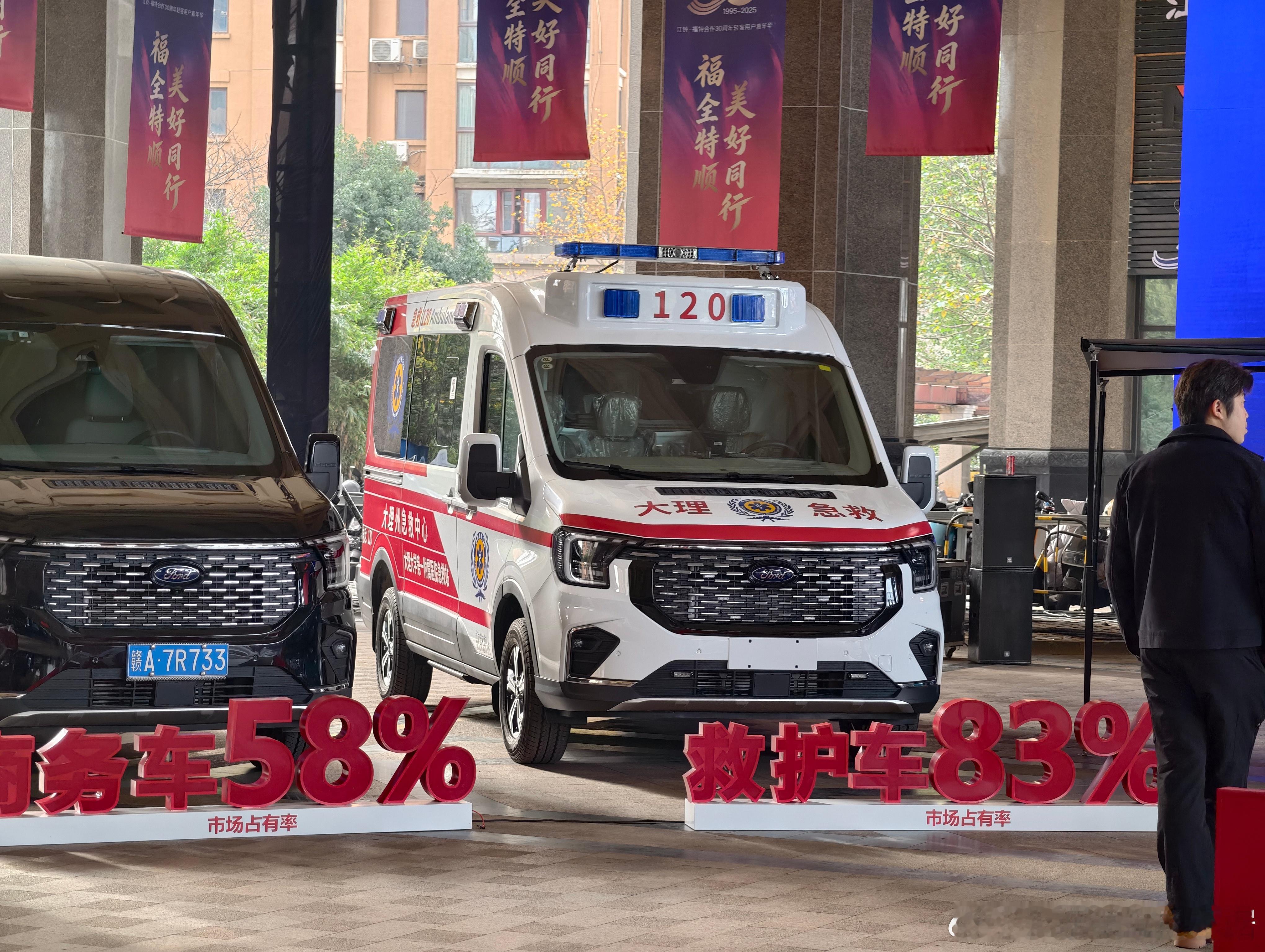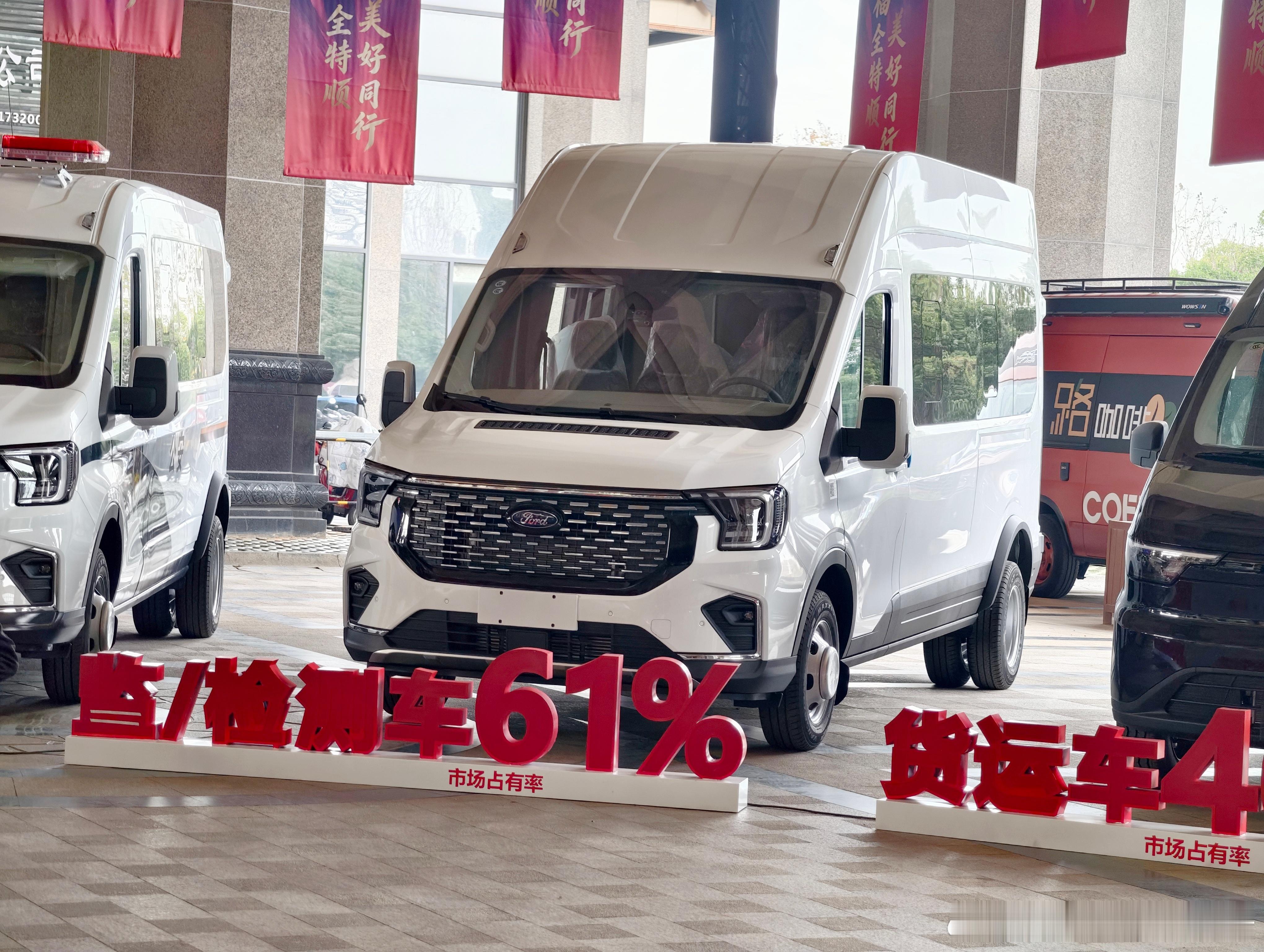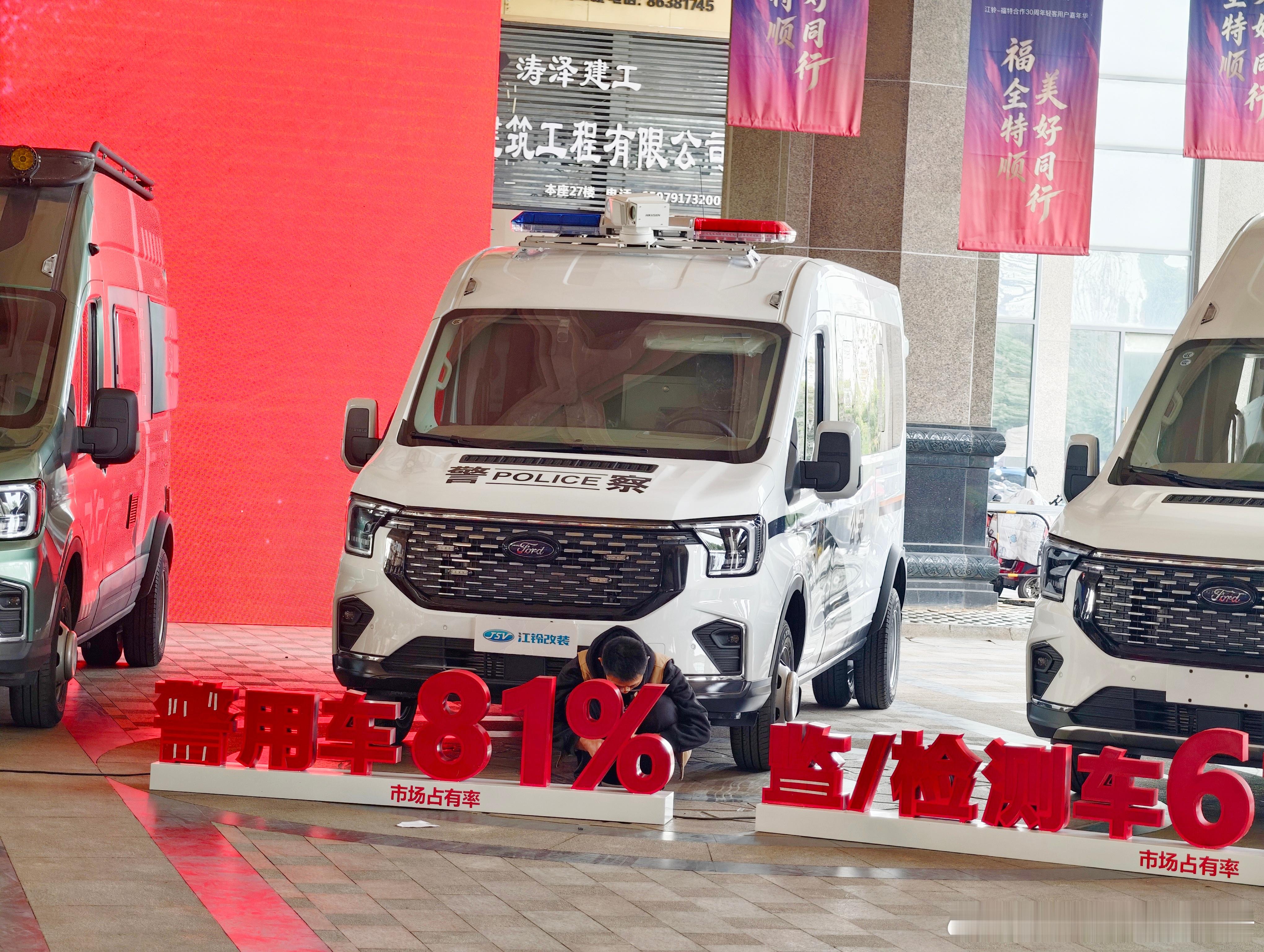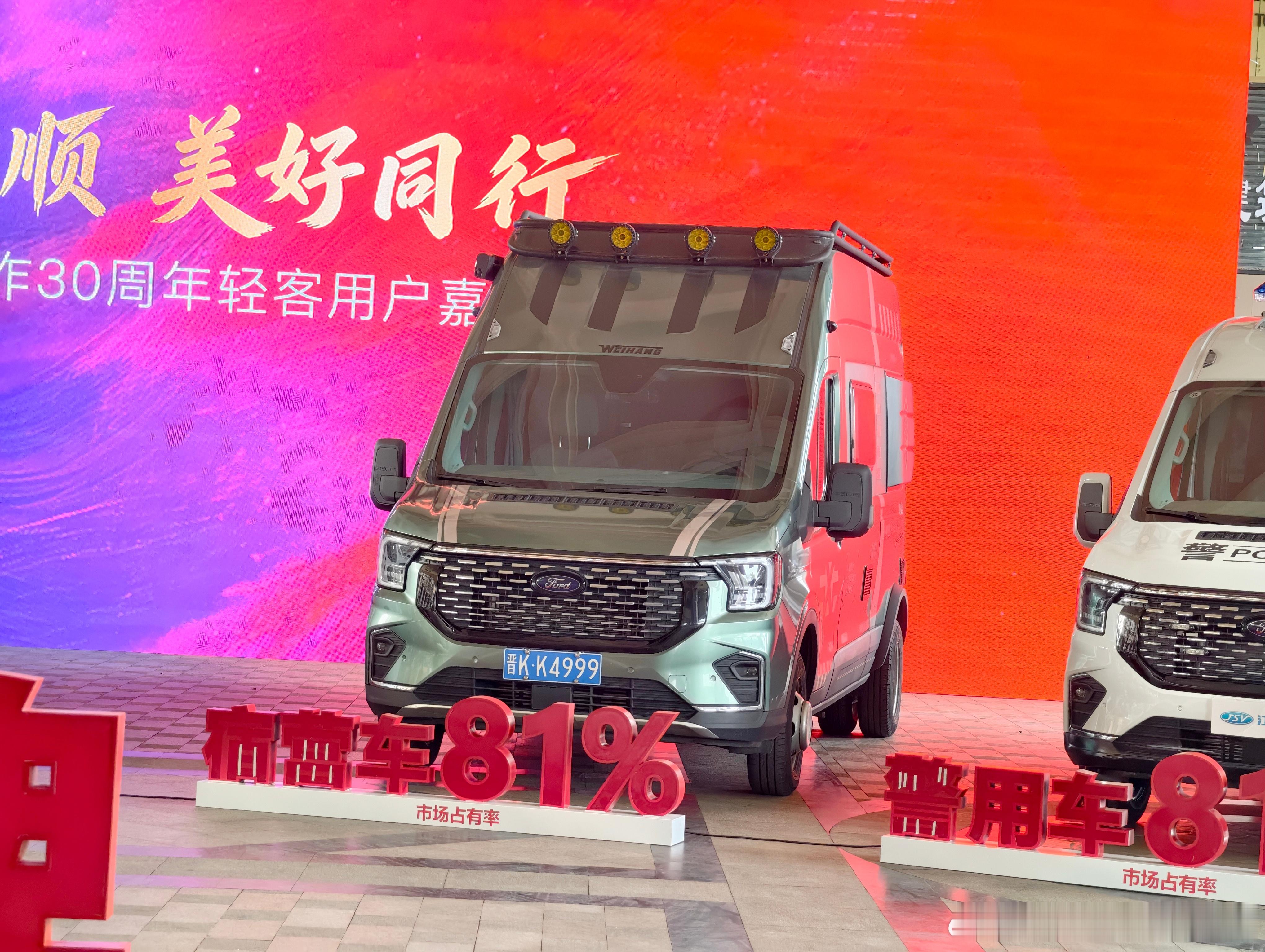 江铃-福特合作三十周年轻客用户嘉年华,会场摆了很多轻客车、商用车,覆盖了很多我们日常熟悉的行业,并且在展车前面都很自信的摆出了市占率,像宿营车(小房车)、警用车、救护车这些领域的市占率都在80%以上,这是行业巨头应有的自信倨能聊江铃福特轻客家族快运快赢江铃福特 南昌·南昌力高皇冠假日酒店