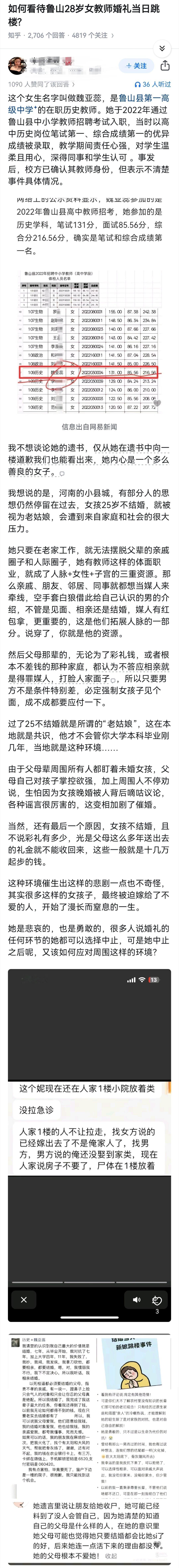 如何看待鲁山28岁女教师婚礼当日跳楼?