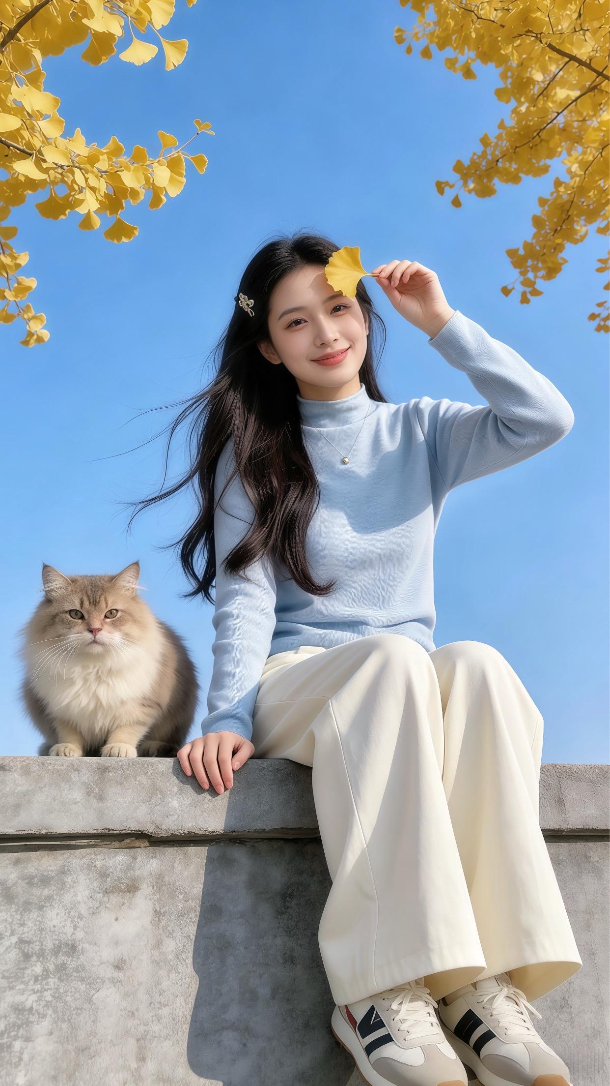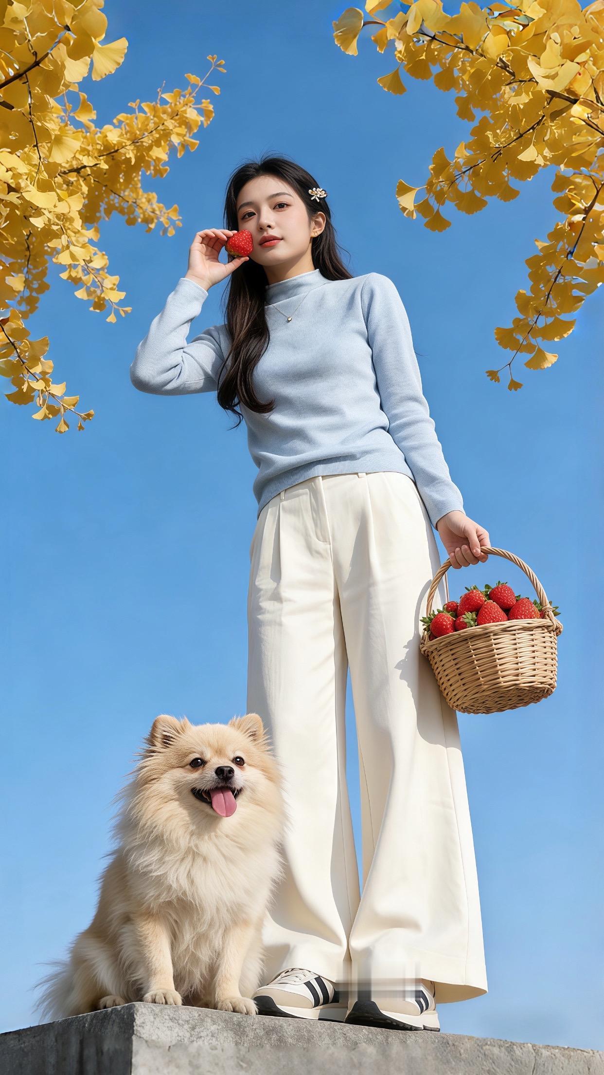 浅蓝高领打底衫➕奶白阔腿裤的搭配,清清爽爽的感觉像是把蓝天穿在身上,温柔感满满~外搭毛绒外套又甜又软糯,秋冬氛围感拉满啦!
