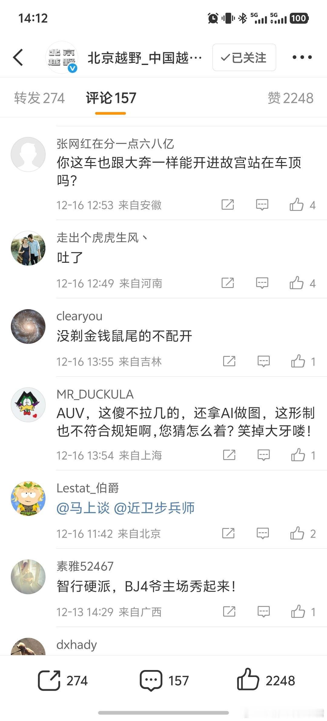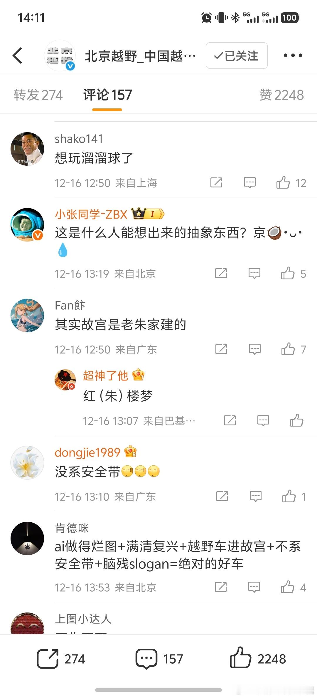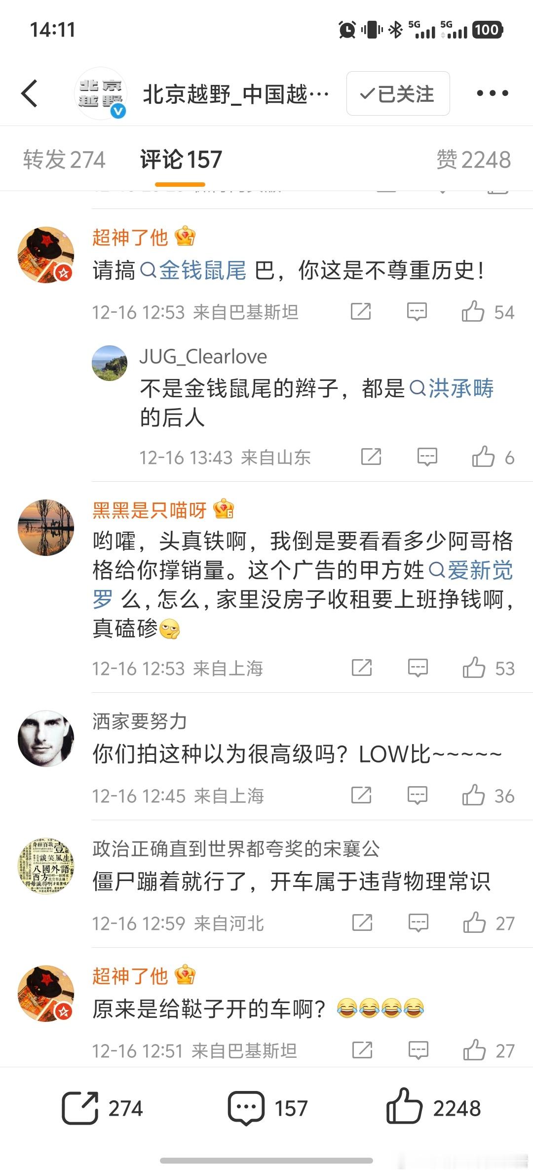 评论区真精彩,越是小的汽车品牌,越容易整一个幺蛾子出来。毕竟大品牌会有完整的广告审核机制,而小品牌,通常就是领导一拍脑门,就去干了倨能聊大V聊车