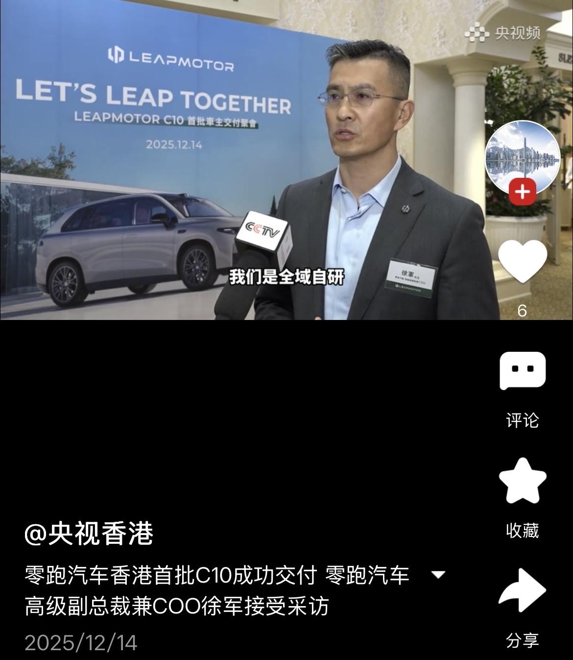 零跑C10香港首批车交付,知名演员胡杏儿成为首位车主。 12月14日,香港首批零跑C10车主喜提爱车,著名演员胡杏儿更是成为了香港首位零跑C10车主。 回顾零跑今年的出海成就,不仅海外门店数量目前突破了900家,1-11月份的累计出口量超5万台,应该是稳居新势力第一。那么零跑出海如此成功的原因是什么?我觉得在香港首批交付仪式上,零跑的高管就已经揭露了秘密。 首先就是全域自研,通过对电池、电驱、智驾等核心技术的掌握,可以做到“同级别最好,价格更低”,如CTC 2.0、8155芯片、7.1声道音乐座舱的加持,让零跑C10在香港具备了突出的产品力。其次是通过数字化重塑了研发、生产、销售、服务全流程,形成“快速迭代+精准交付”的体系能力,这让零跑C10的“无感OTA”仅需10秒就能完成升级。 最后就是工程师文化,说简单点就是从用户需求角度出发,用工程的办法将其实现。比如零跑C10的亲子置物平台、抗菌有机硅座椅对有宝宝的家庭非常友好,空间设计能满足短途通勤和购物装载双重需求。 所以,具备这三大王牌的零跑,怎能做不好?而凭借这样的硬实力,相信零跑在未来的出海道路中也能越走越远,明年百万销量目标大有希望!