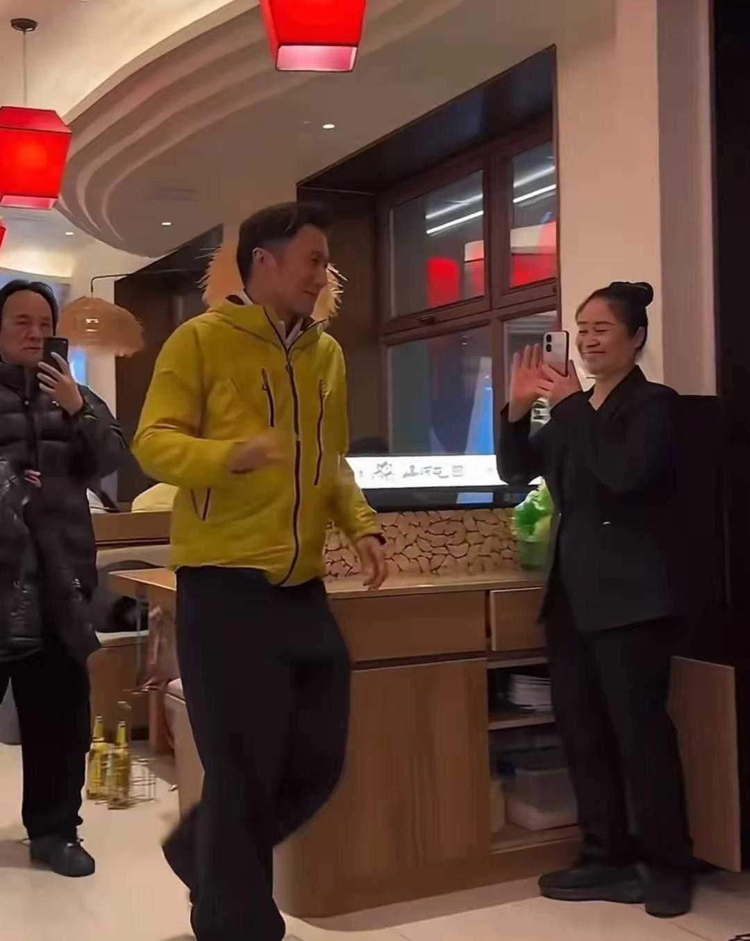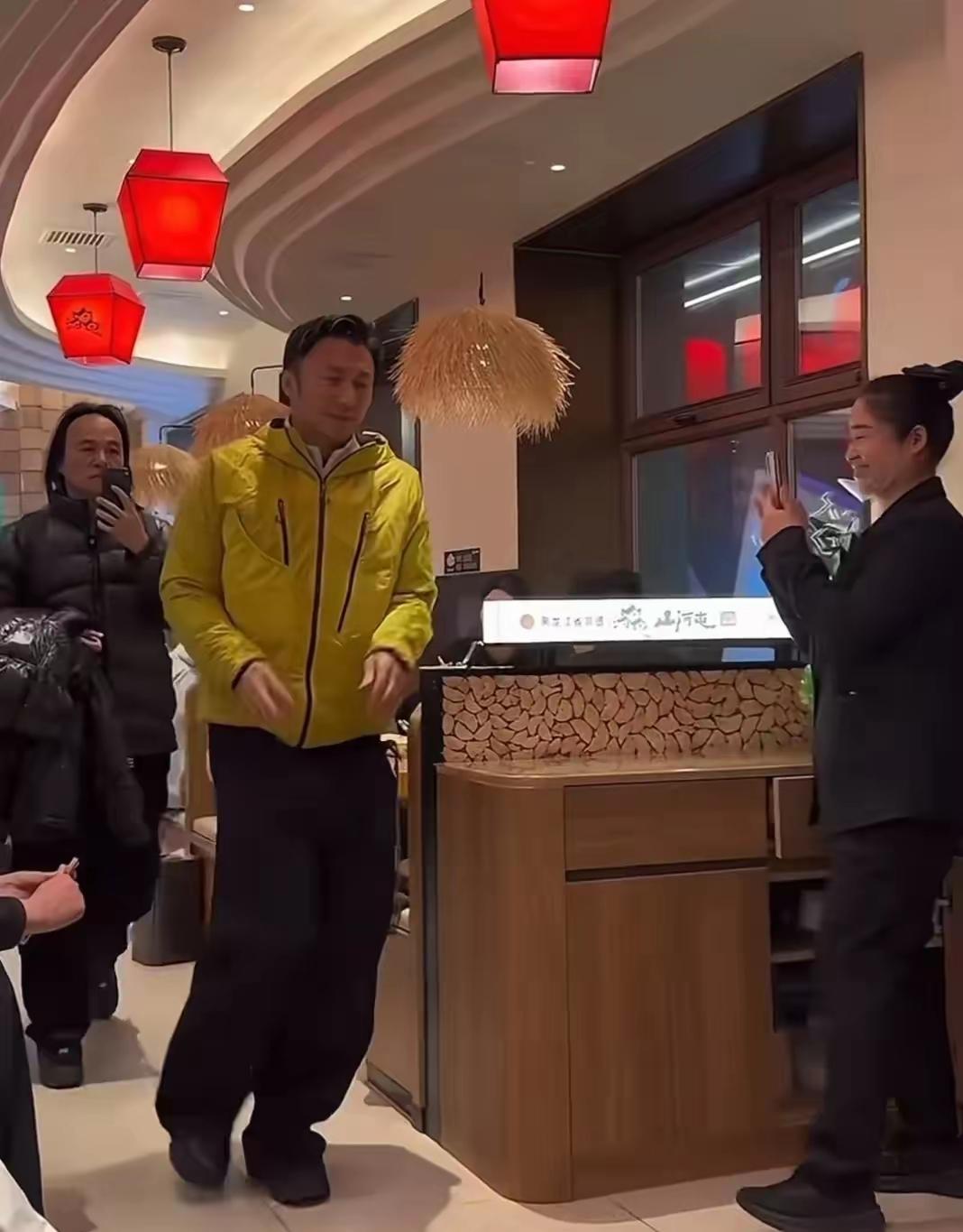 谢霆锋现身哈尔滨餐馆吃饭,真是人红走到哪里都是焦点,看看这左右前后的人都在用手机拍照! 谢霆锋当天穿黄色休闲上衣,下搭黑色休闲裤,一身慵懒风造型,打扮得休闲随性又舒服,发型还是那个个性,看到身旁有人拍照,脸上露出微笑打招呼,这性格还挺随和!